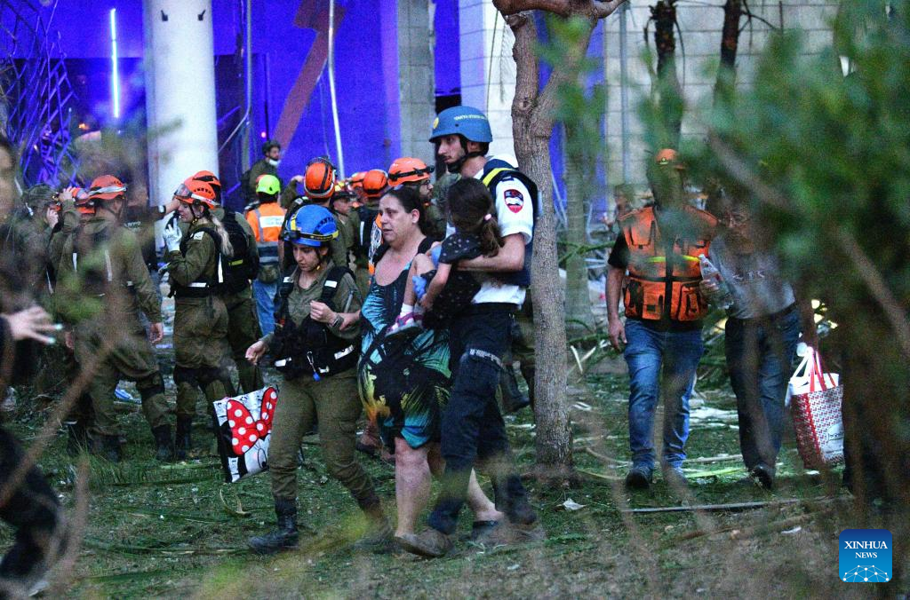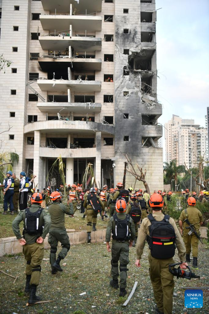 JERUSALEM, June 16 (Xinhua) -- Iran launched a new pre-dawn missile attack on Israel on Monday, killing at least eight people and wounding dozens, Israeli officials said, as the four-day conflict triggered by an Israeli surprise assault intensified.