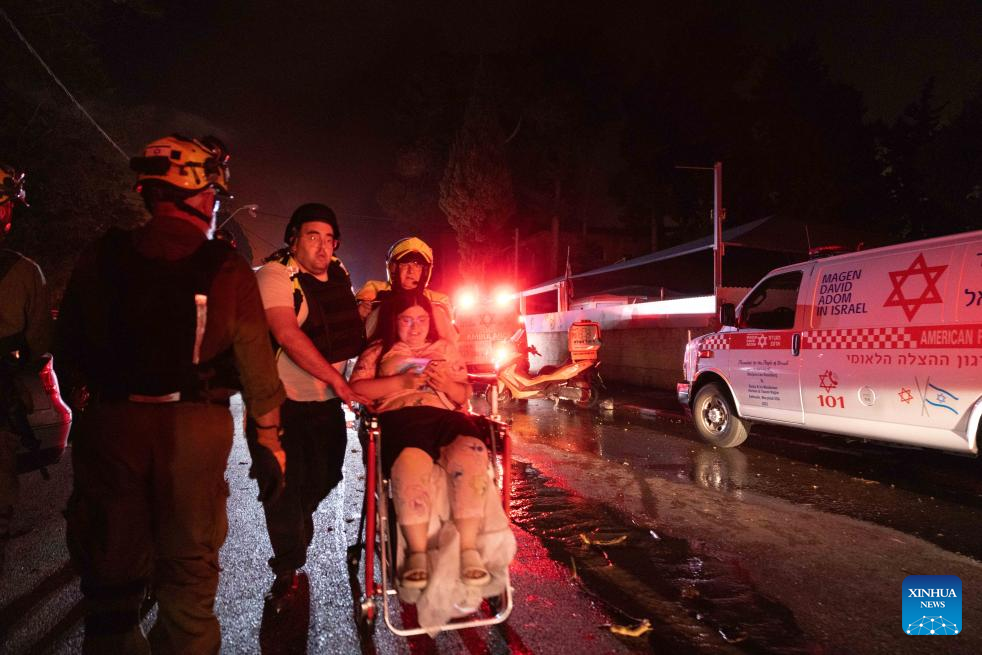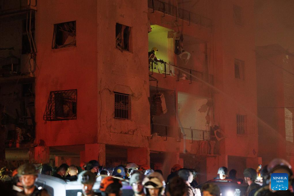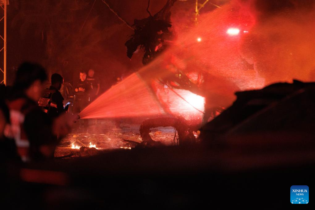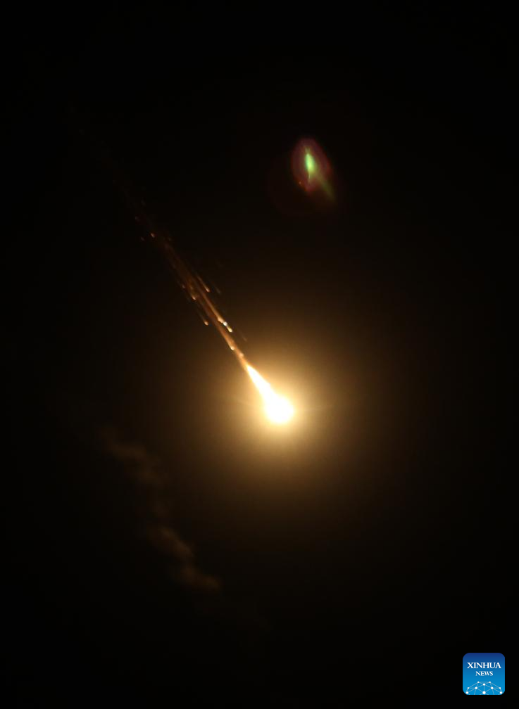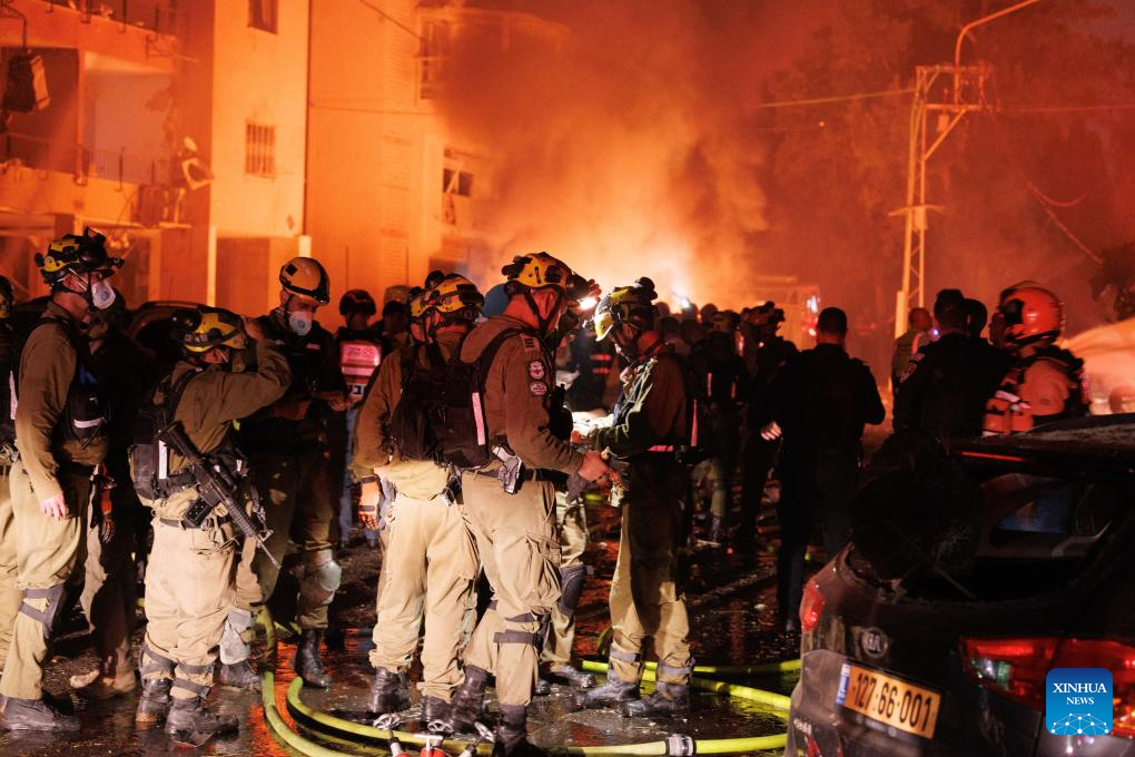 JERUSALEM, June 15 (Xinhua) -- Iran launched a fresh aerial attack on Israel on Sunday night, injuring at least two people and igniting fires, Israeli authorities said.