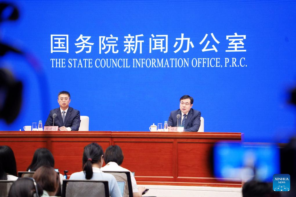 China's State Council Information Office (SCIO) holds a press conference on China's economic performance in May, in Beijing, capital of China, June 16, 2025. (Xinhua/Pan Xu)