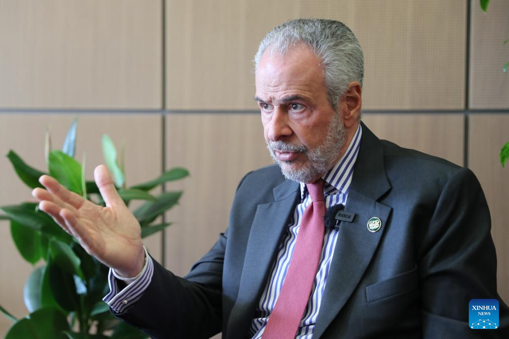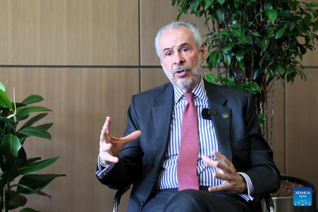 Andre Aranha Correa do Lago, president-designate of the upcoming COP30 climate change conference, speaks during an exclusive interview with Xinhua on the sidelines of the UN June Climate Meetings in Bonn, Germany, June 17, 2025. (Xinhua/Du Zheyu)