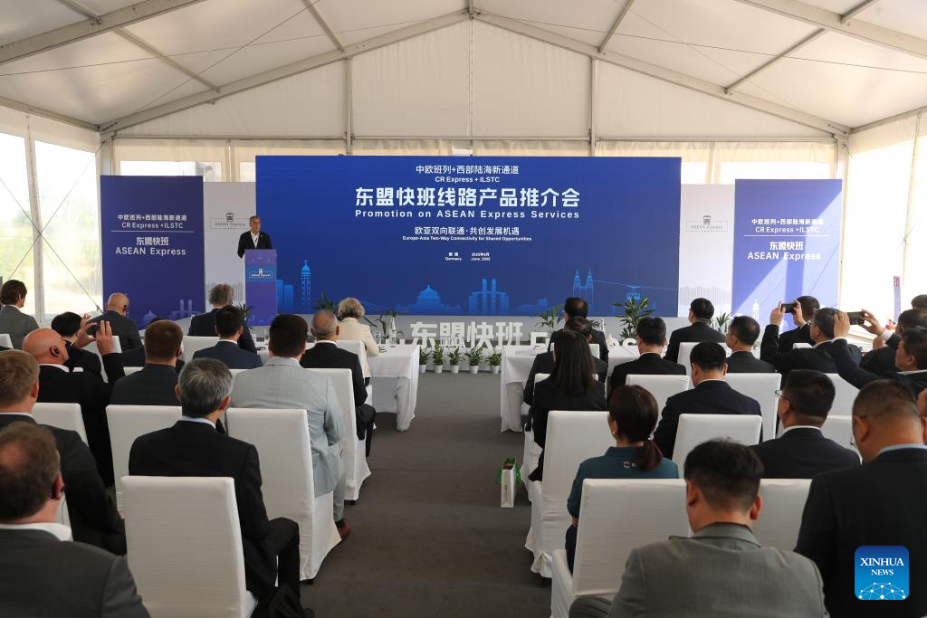 This photo shows a scene of the promotion on ASEAN Express services in Duisburg, Germany, June 21, 2025.