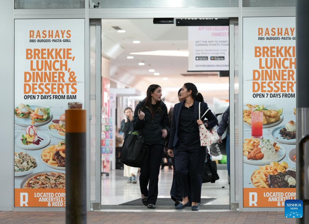 Customers walk out of the Southpoint Shopping Center in Canberra, Australia, June 25, 2025. Australia's annual rate of inflation eased more than expected in May to the lowest level in 2025, according to official data.