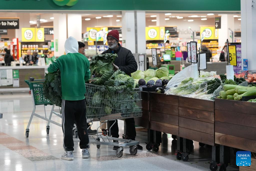 Customers pick up vegetables from a trolley at the Southpoint Shopping Center in Canberra, Australia, June 25, 2025. Australia's annual rate of inflation eased more than expected in May to the lowest level in 2025, according to official data.