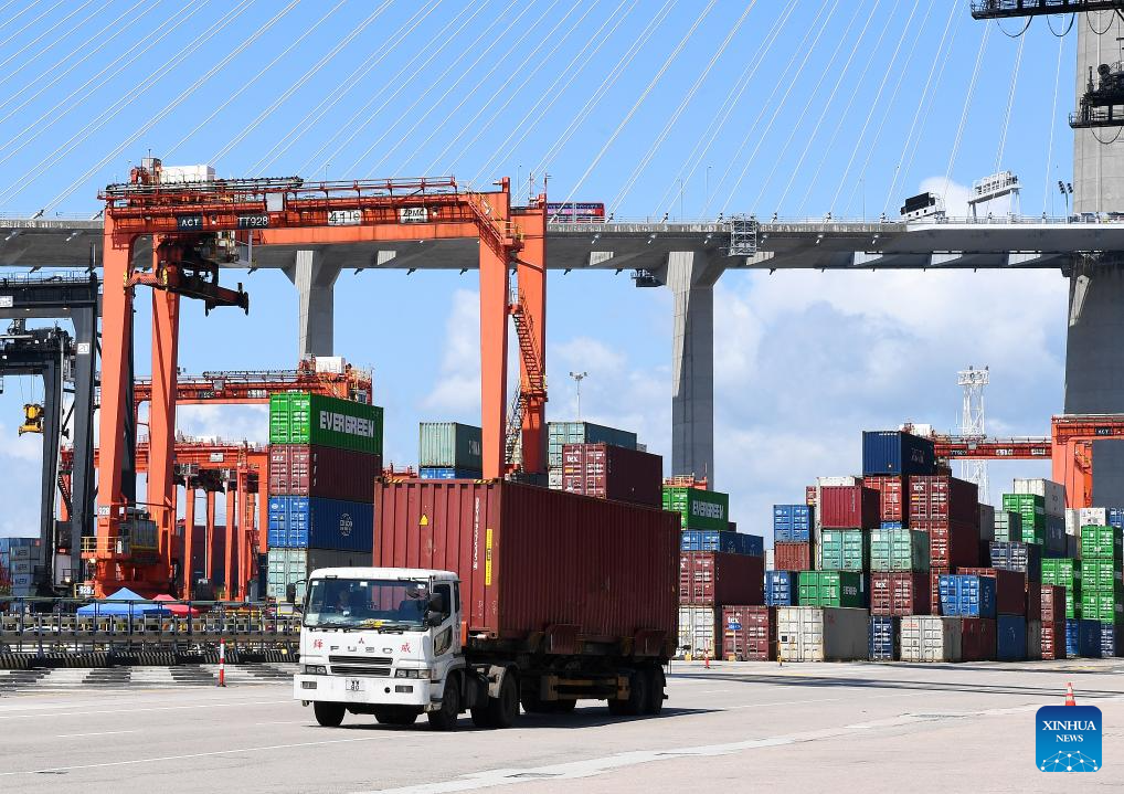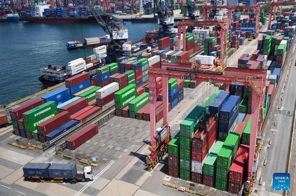 This photo shows a view of a container terminal of Hong Kong, south China, May 22, 2025.(Xinhua/Chen Duo)