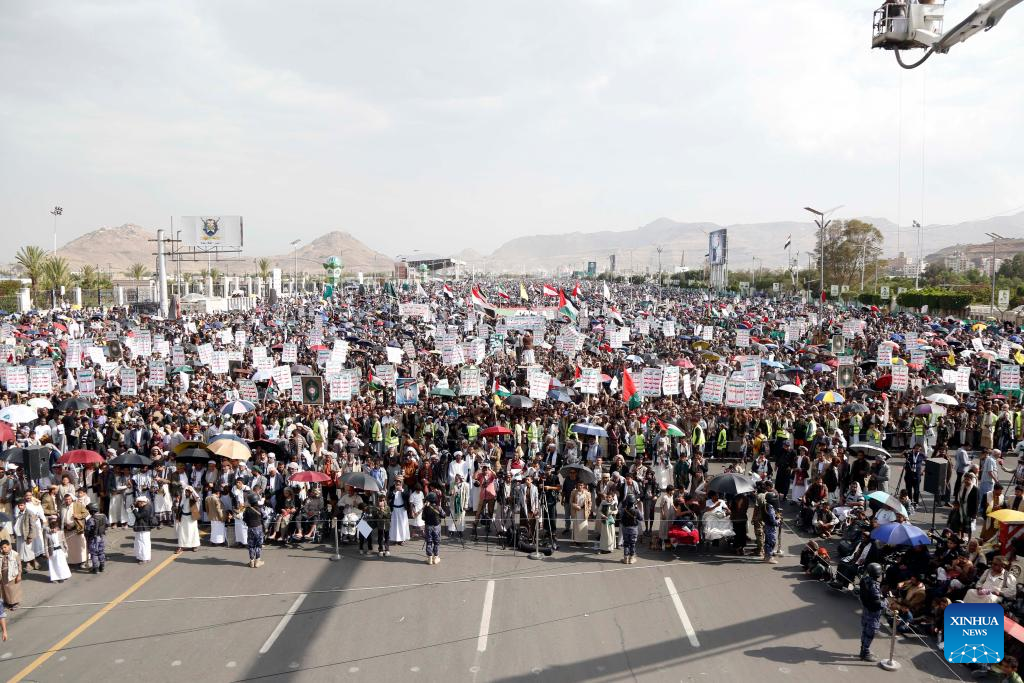 ADEN, Yemen, June 27 (Xinhua) -- Thousands of Yemenis on Friday gathered in public squares across Houthi-controlled provinces to show their support for Gaza and Iran, according to the Houthi-run Al-Masirah TV.