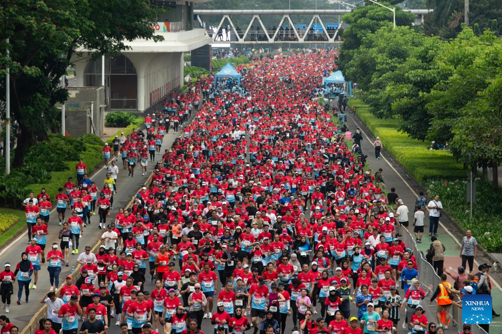 Participants run during the Jakarta International Marathon 2025 in Jakarta, Indonesia on June 29, 2025. (Xinhua/Veri Sanovri)