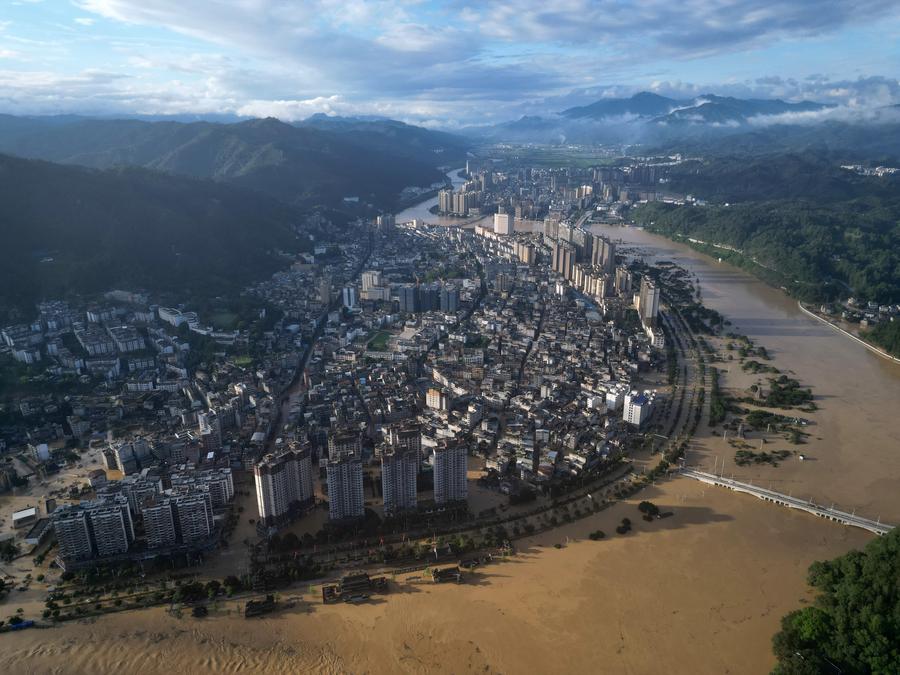 An aerial drone photo shows the flood-stricken Rongjiang County, southwest China's Guizhou Province, June 28, 2025. (Xinhua/Liu Xu)Rescuers evacuate residents in Rongjiang County, southwest China's Guizhou Province, June 28, 2025. (Xinhua/Liu Xu)An aerial drone photo shows the flood-stricken Rongjiang County, southwest China's Guizhou Province, June 28, 2025. (Xinhua/Liu Xu)Volunteers work in the flood-stricken Rongjiang County, southwest China's Guizhou Province, June 29, 2025. (Photo by Wang Bingzhen/Xinhua)■