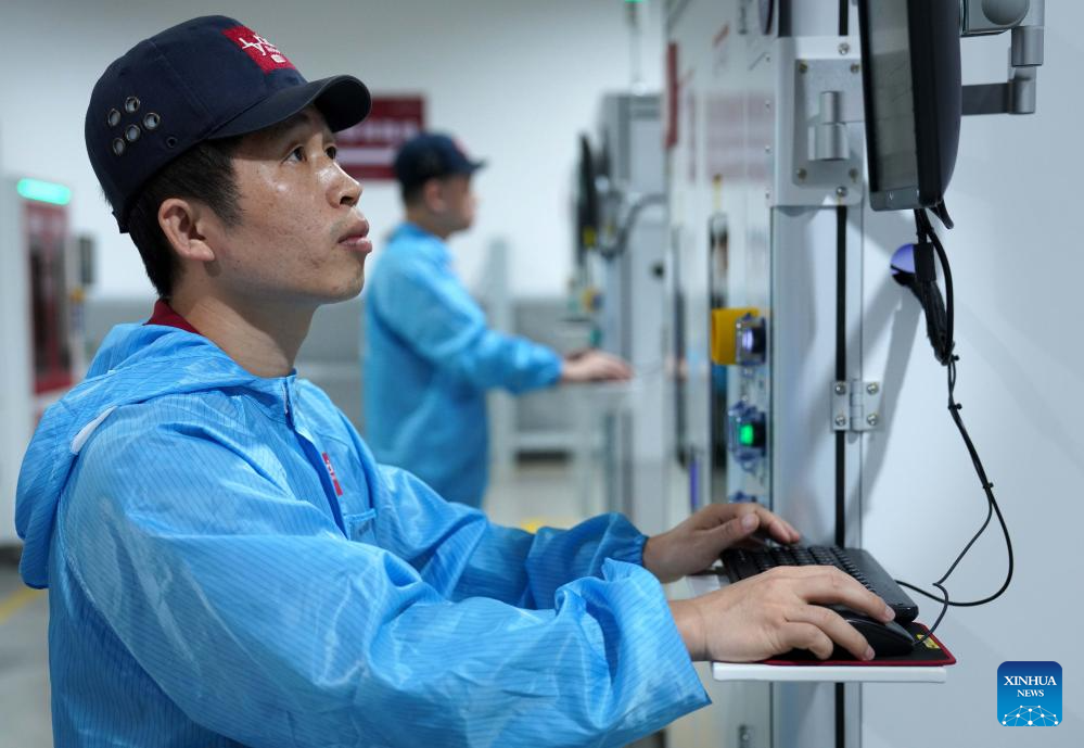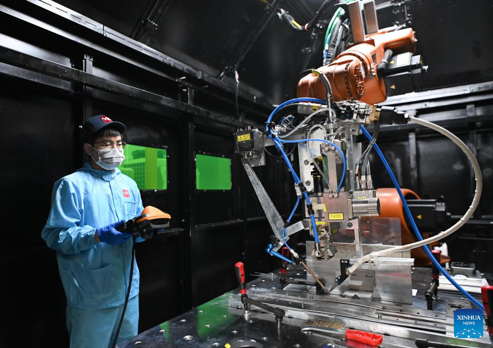 A staff member sets parameters before welding at Guangdong Lyric Robot Automation Co., Ltd. in Huizhou, south China's Guangdong Province, June 27, 2025.