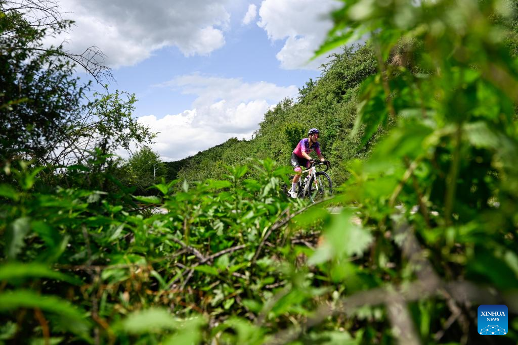 Adam Bradac of Factor Racing competes during Stage 2 of the Tour of Magnificent Qinghai International Road Cycling Race from Duoba to Huzhu, northwest China's Qinghai Province, July 7, 2025. (Xinhua/Zhang Long)