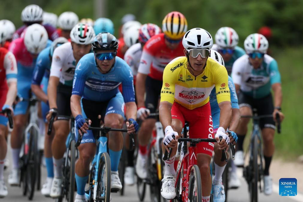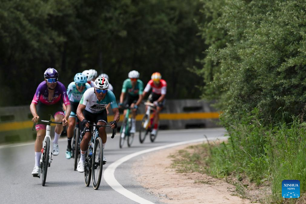 Merhawi Kudus of Burgos-Burpellet-BH competes during Stage 2 of the Tour of Magnificent Qinghai International Road Cycling Race from Duoba to Huzhu, northwest China's Qinghai Province, July 7, 2025. (Xinhua/Zhang Long)
