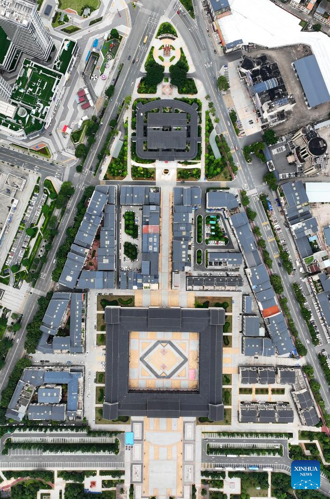 An aerial drone photo taken on June 19, 2025 shows the World Hakka Culture and Folklore City in Longnan, east China's Jiangxi Province. Longnan City in southern Jiangxi is home to 376 Hakka walled complexes, a special architectural type, accounting for more than 70 percent of all such structures in Gannan (southern Jiangxi Province). The whole structure of the building resembles a small fortified city, containing halls, storehouses and living areas. In recent years, Longnan City has launched a systematic preservation initiative, investing 150 million yuan (about 20.89 million U.S. dollars) to protect and restore these historical complexes. Up until now, the repair of 92 Hakka walled villages has been completed. These sites have transcended their roles as cultural relics, evolving into engines powering the city's cultural tourism and rural revitalization. In the first four months of this year, Longnan received 3.33 million tourists. (Xinhua/Wan Xiang)