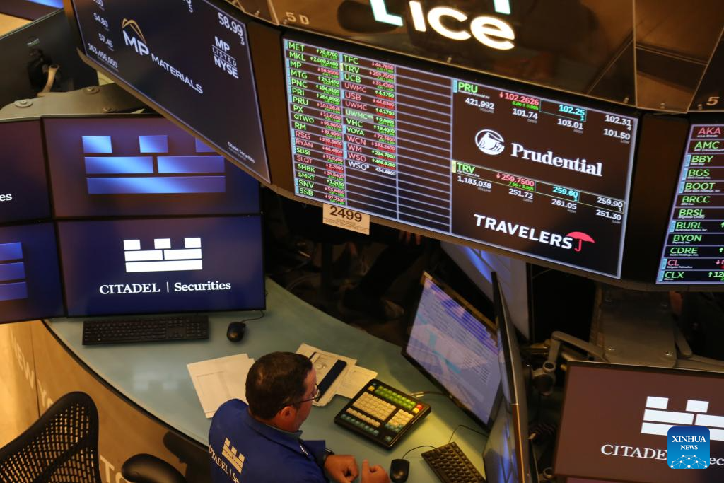 A trader works on the floor of the New York Stock Exchange in New York, the United States, on July 17, 2025. U.S. stocks ended higher on Thursday. The Dow Jones Industrial Average rose 0.52 percent to 44,484.49. The S&P 500 gained 0.54 percent to 6,297.36, while the Nasdaq Composite Index rose 0.75 percent to 20,885.65. (Xinhua/Liu Yanan)