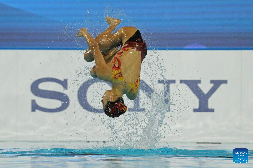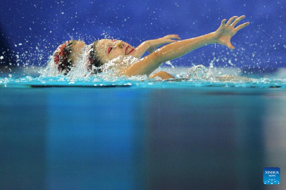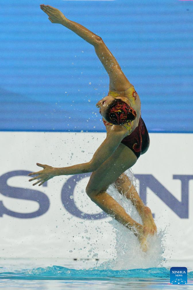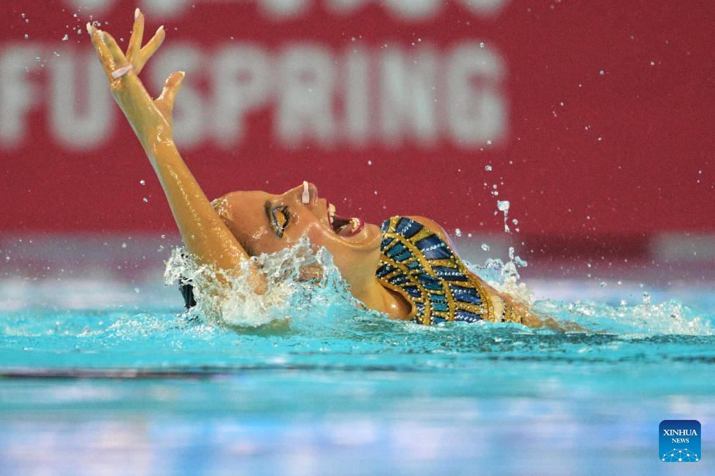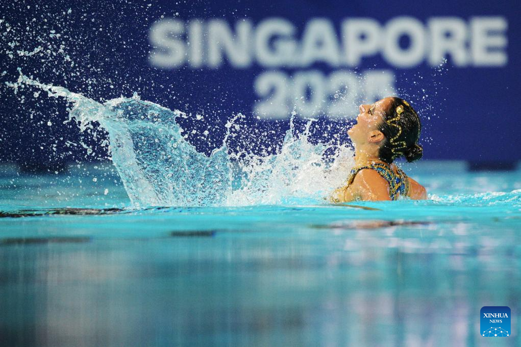 Iris Tio Casas of Spain competes during the women's solo technical preliminary of artistic swimming at the World Aquatic Championships in Singapore, July 18, 2025. (Xinhua/Then Chih Wey)