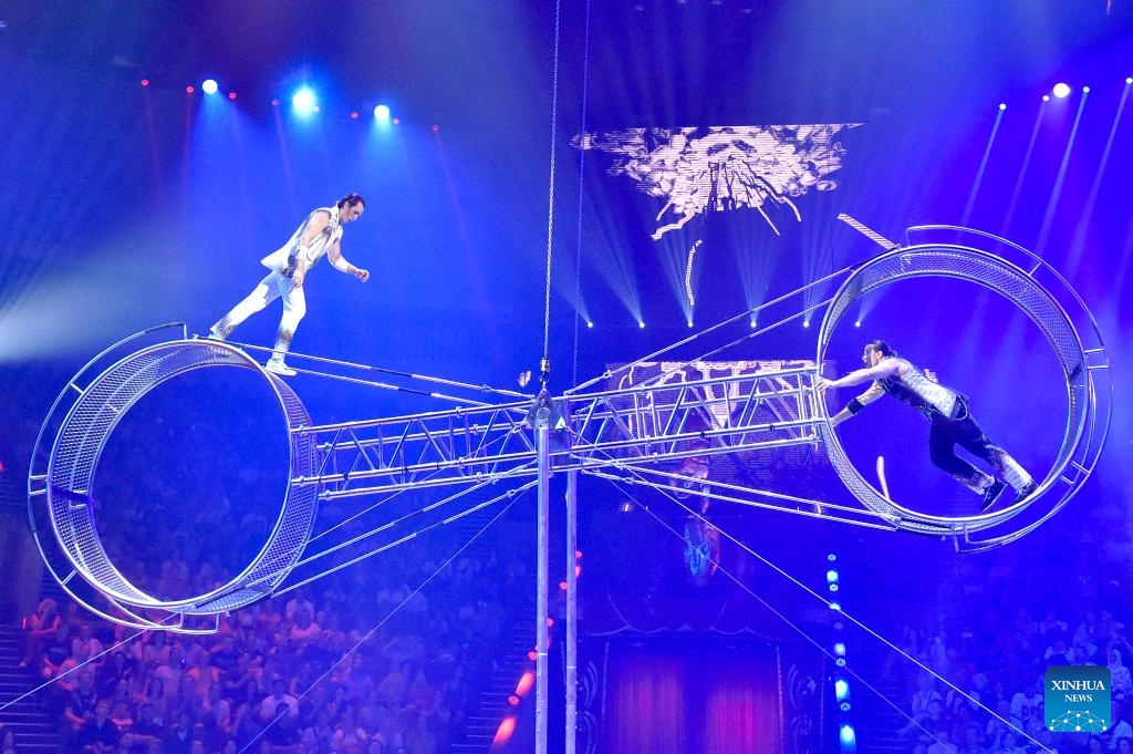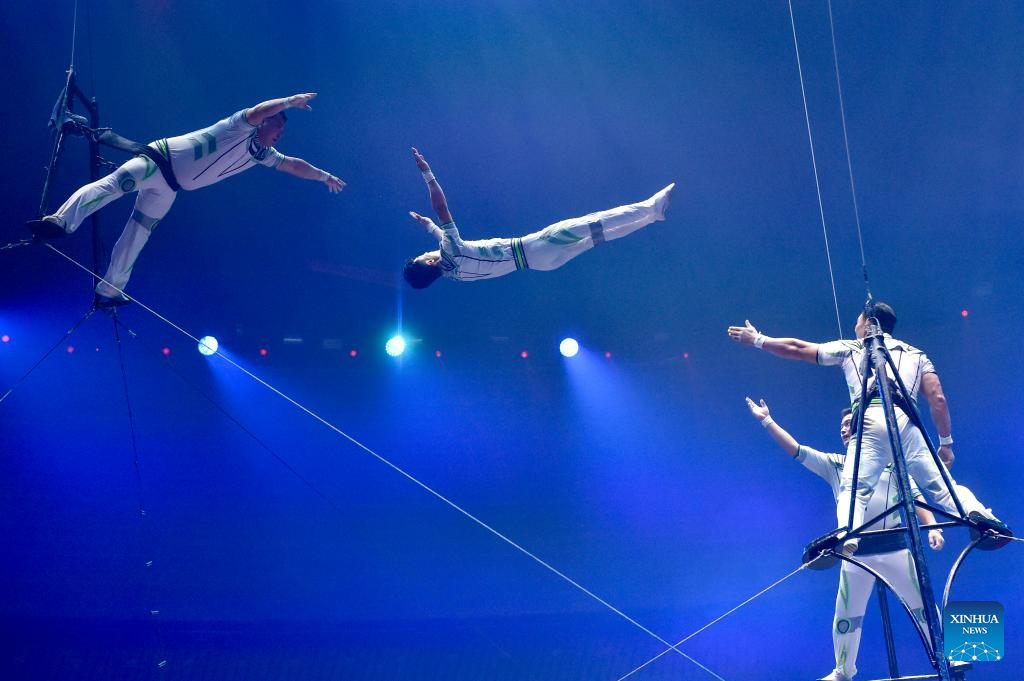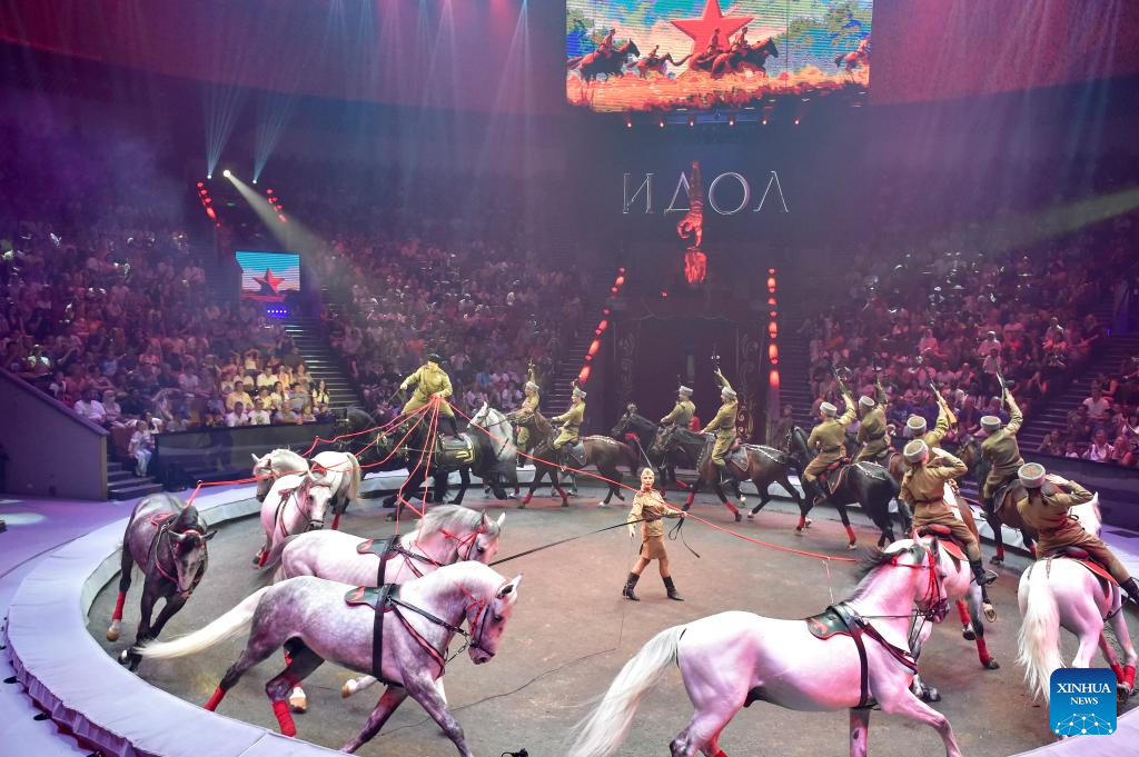Artists perform during the World Circus Art Festival "IDOL-2025" in Moscow, Russia, on July 17, 2025. The festival is held here from July 17 to 20. (Photo by Alexander Zemlianichenko Jr/Xinhua)
