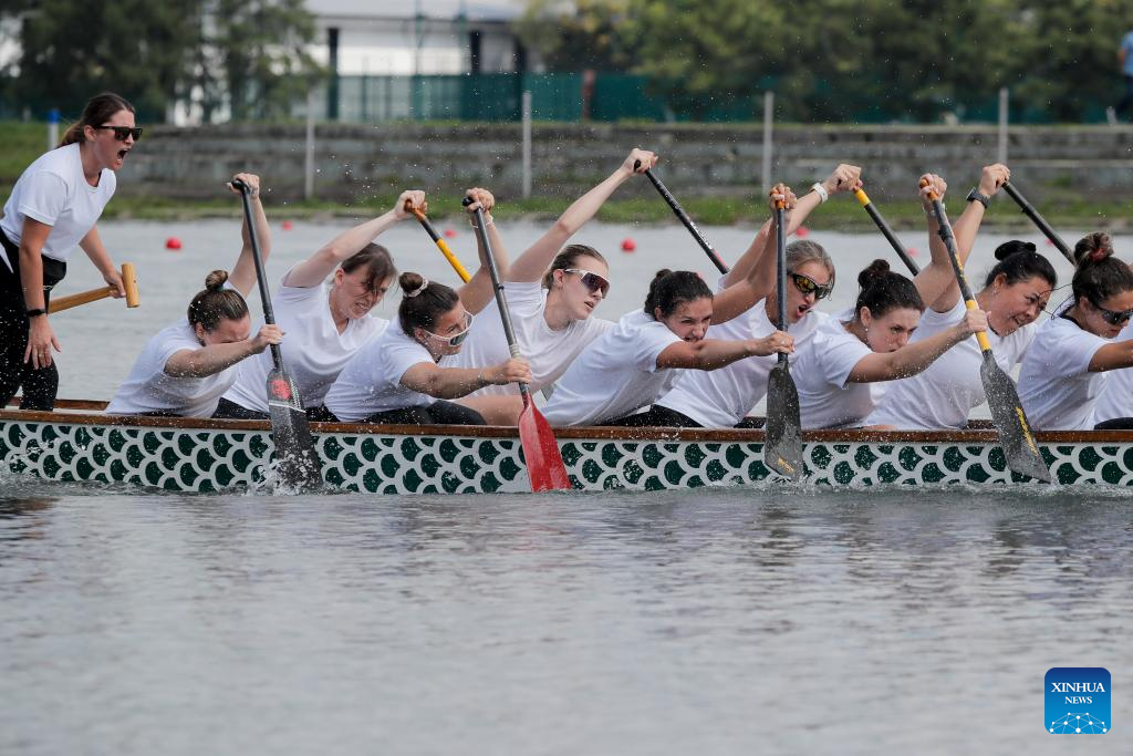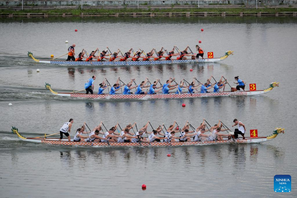 Teams compete during the dragon boat championship of Russia in Moscow, Russia, July 23, 2025. (Photo by Alexander Zemlianichenko Jr/Xinhua)