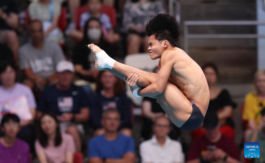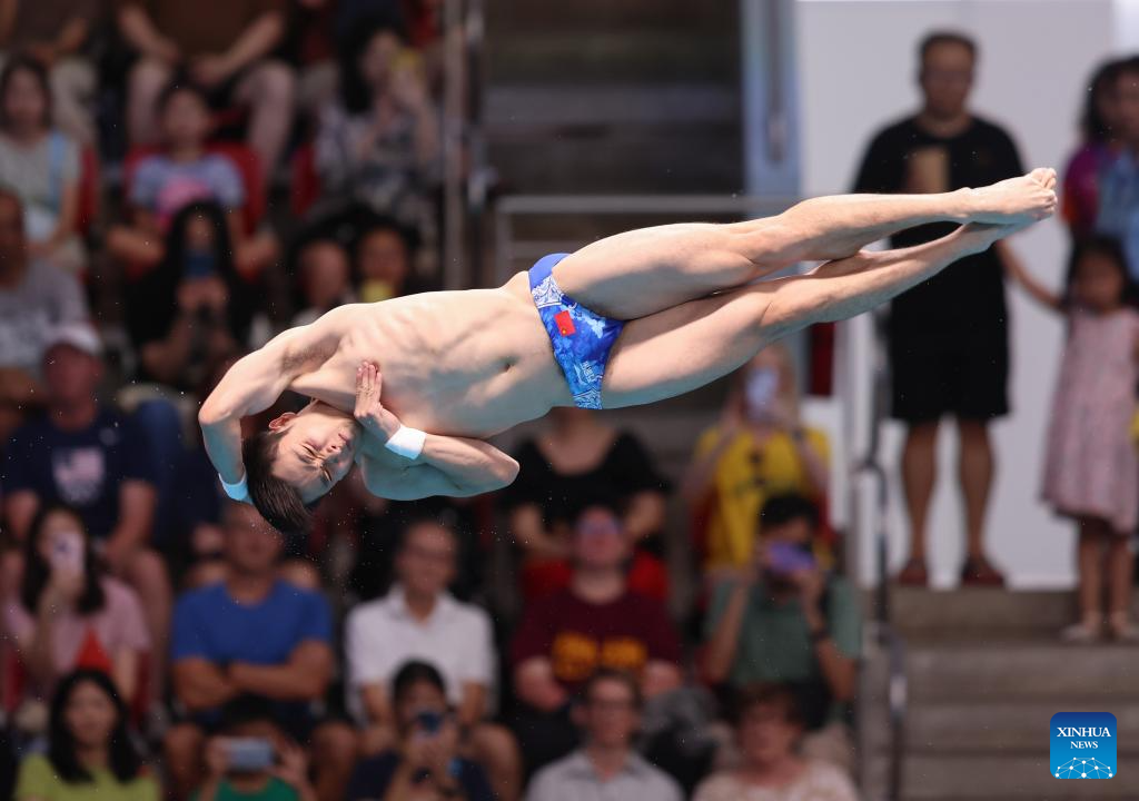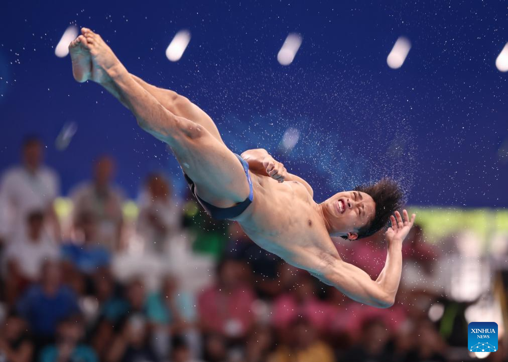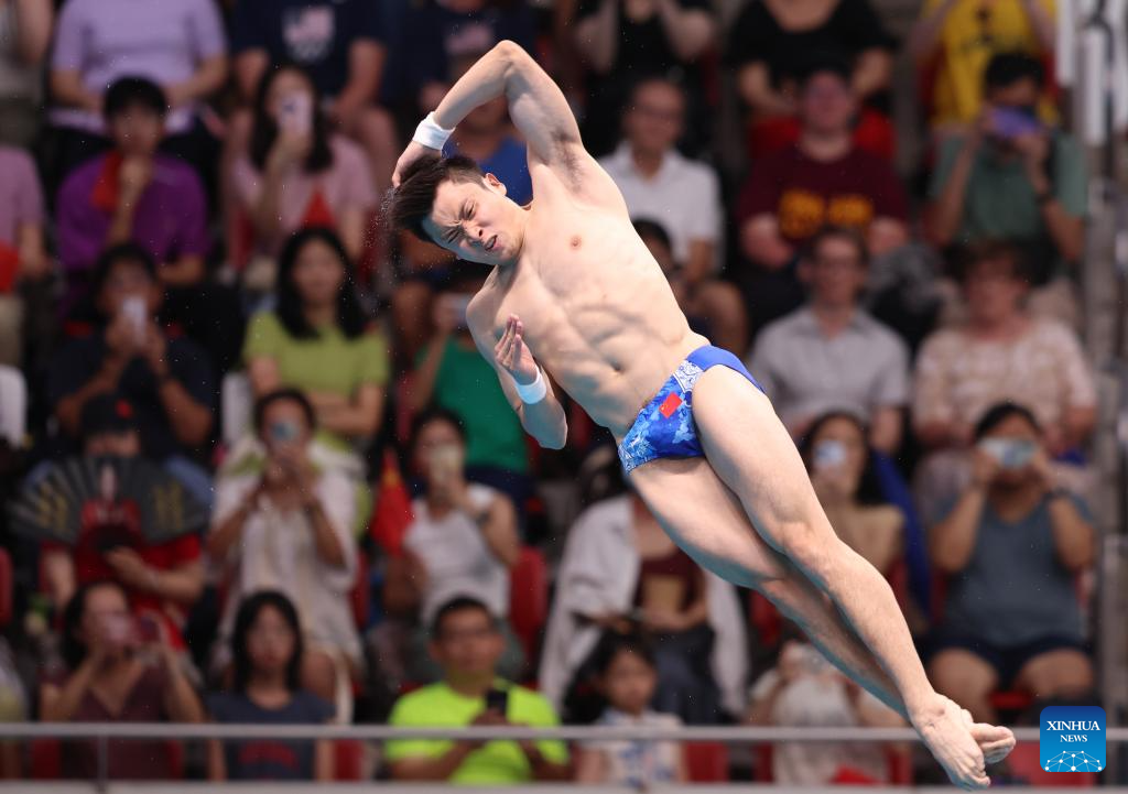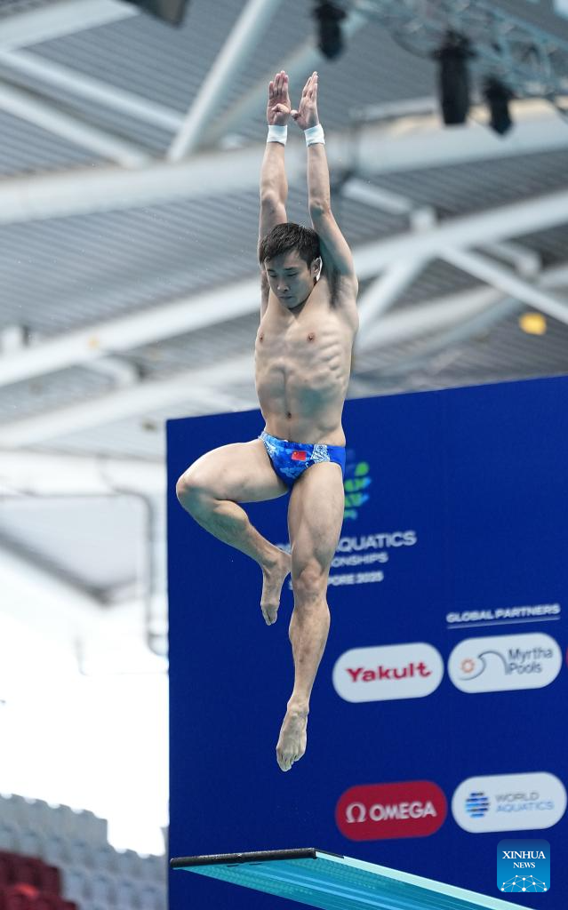 Cao Yuan of China competes during mixed 3m & 10m team final of diving at the World Aquatics Championships in Singapore, July 26, 2025. (Xinhua/Xue Yuge)
