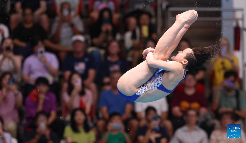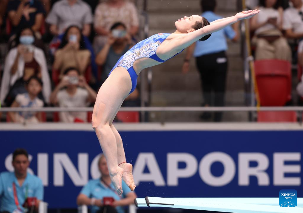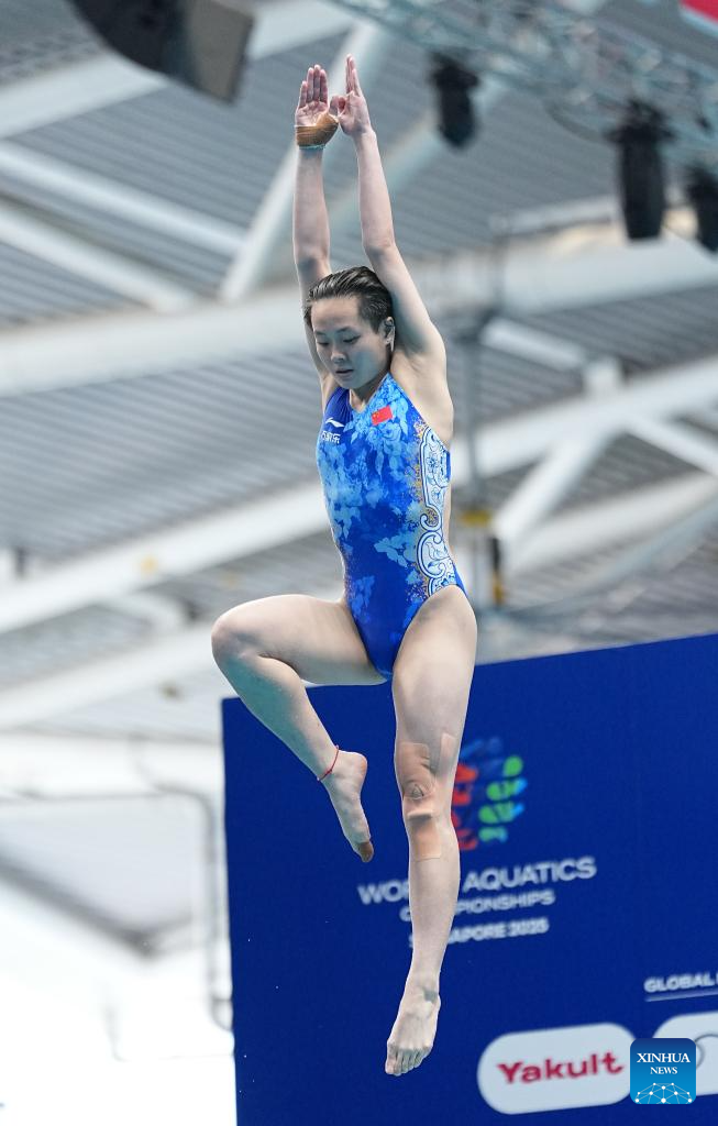 Chen Yiwen of China competes during mixed 3m & 10m team final of diving at the World Aquatics Championships in Singapore, July 26, 2025. (Xinhua/Luo Yuan)