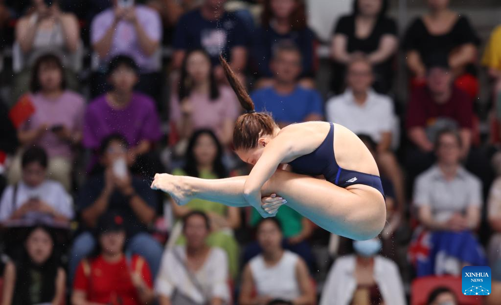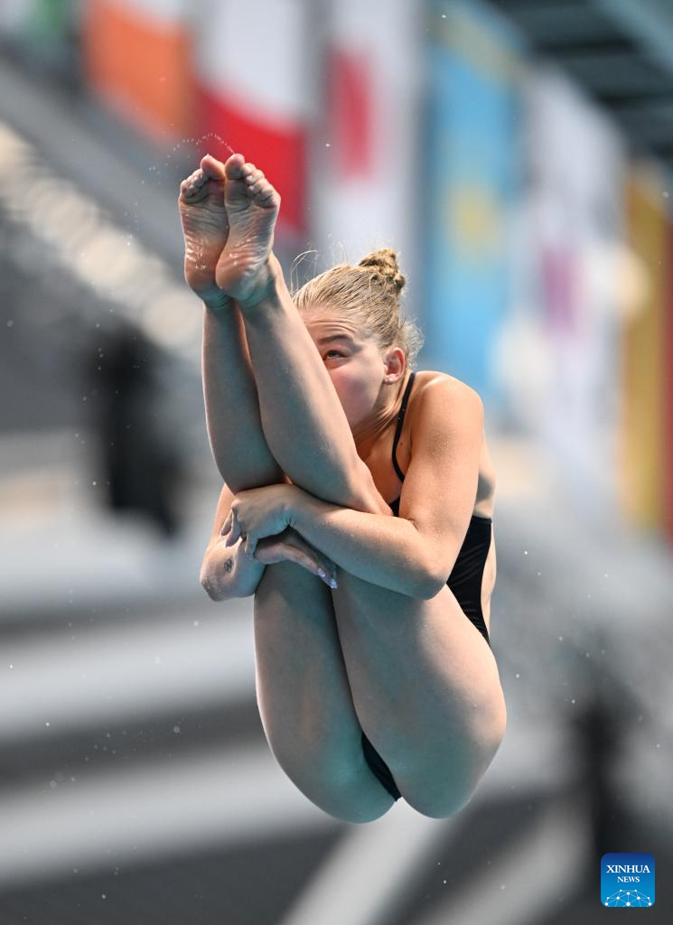 Jette Muller of Germany competes during mixed 3m & 10m team final of diving at the World Aquatics Championships in Singapore, July 26, 2025. (Xinhua/Xue Yuge)