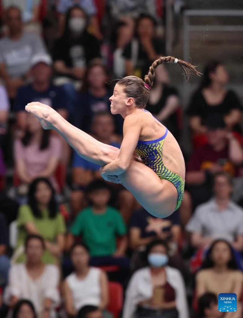Luana Lira of Brazil competes during mixed 3m & 10m team final of diving at the World Aquatics Championships in Singapore, July 26, 2025. (Xinhua/Luo Yuan)