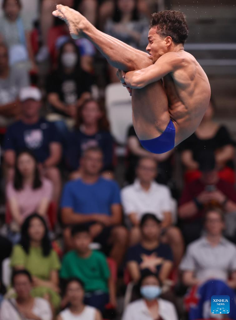Juan Pablo Cortes Zapata of Spain competes during mixed 3m & 10m team final of diving at the World Aquatics Championships in Singapore, July 26, 2025. (Xinhua/Luo Yuan)