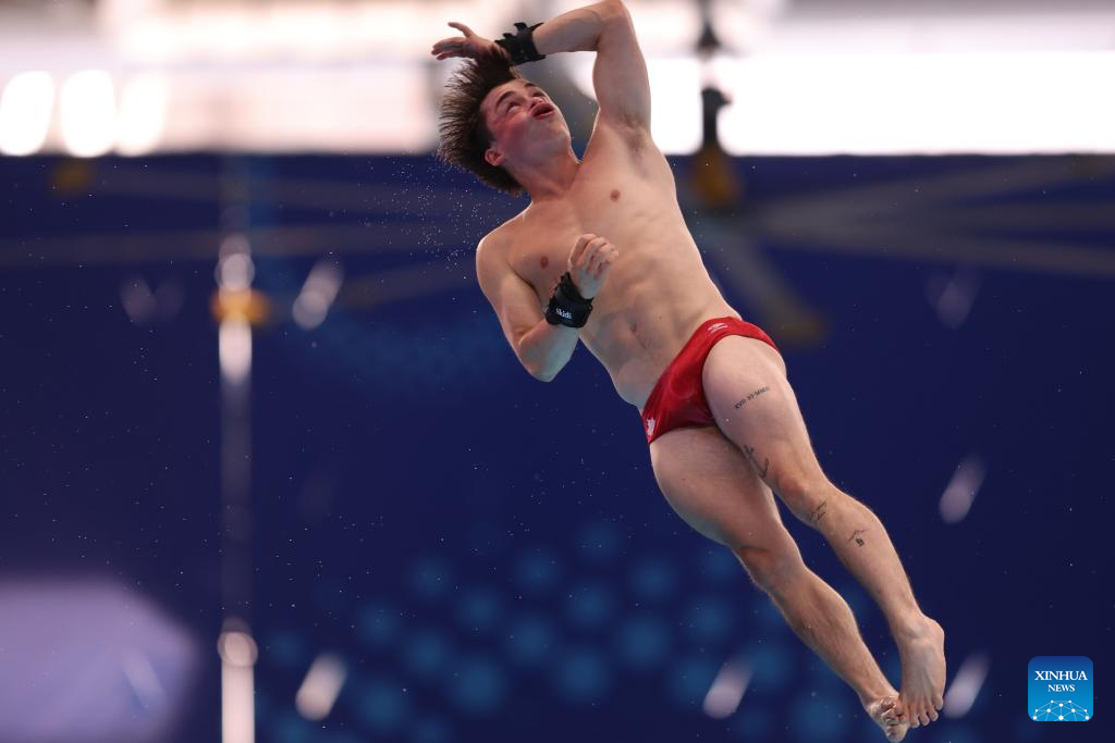 Carson Paul of Canada competes during mixed 3m & 10m team final of diving at the World Aquatics Championships in Singapore, July 26, 2025. (Xinhua/Luo Yuan)