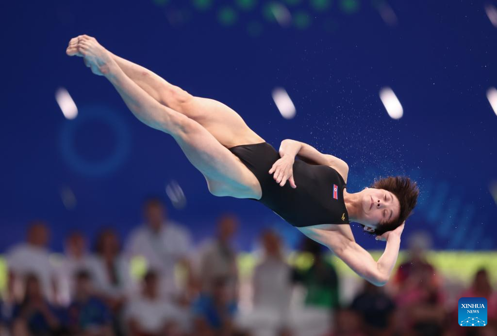 Jo Jin Mi of the Democratic People's Republic of Korea (DPRK) competes during mixed 3m & 10m team final of diving at the World Aquatics Championships in Singapore, July 26, 2025. (Xinhua/Luo Yuan)