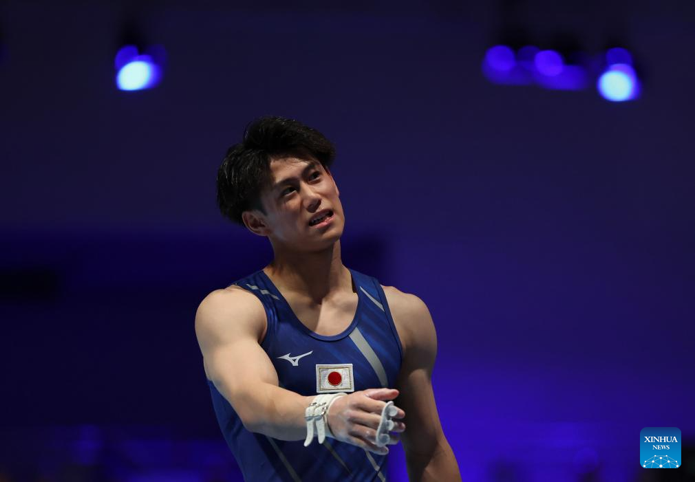 Hashimoto Daiki of Japan reacts after the men's all-around final of artistic gymnastics at the Rhine-Ruhr 2025 FISU World University Games in Essen, Germany, July 25, 2025. (Xinhua/Hu Xingyu)