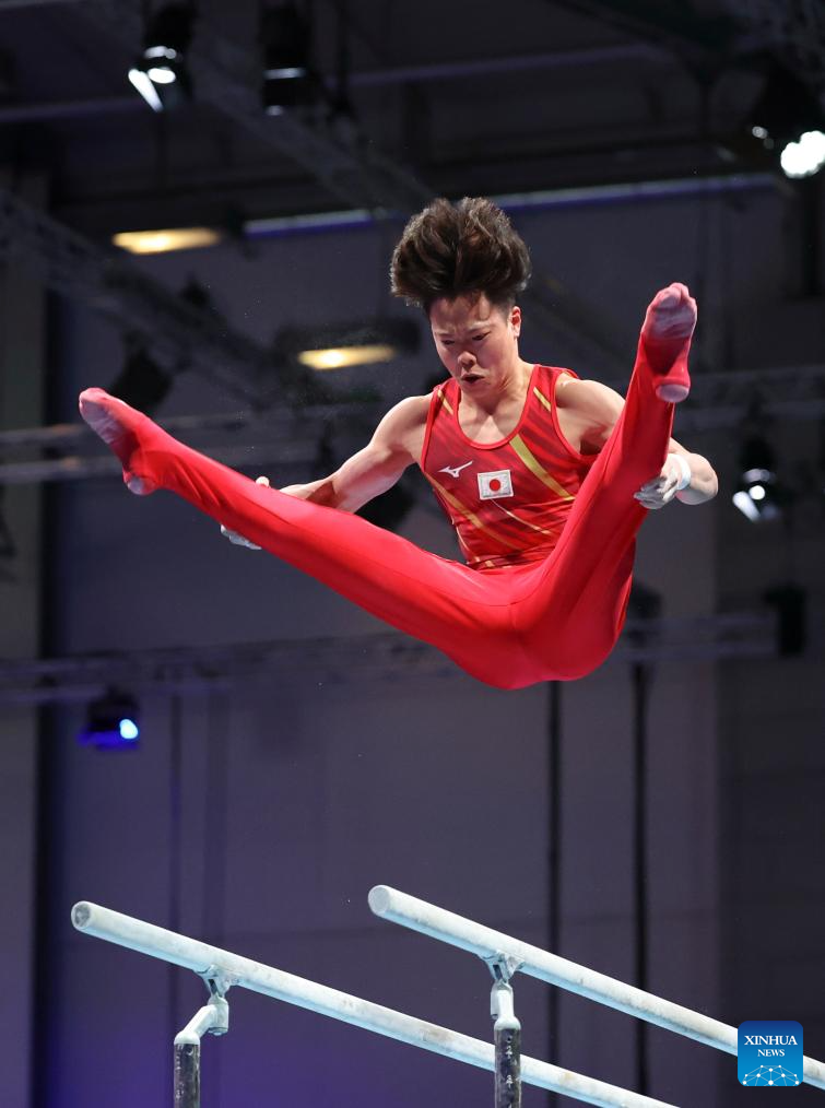 Kawakami Shohei of Japan competes on the parallel bars during the men's all-around final of artistic gymnastics at the Rhine-Ruhr 2025 FISU World University Games in Essen, Germany, July 25, 2025. (Xinhua/Hu Xingyu)