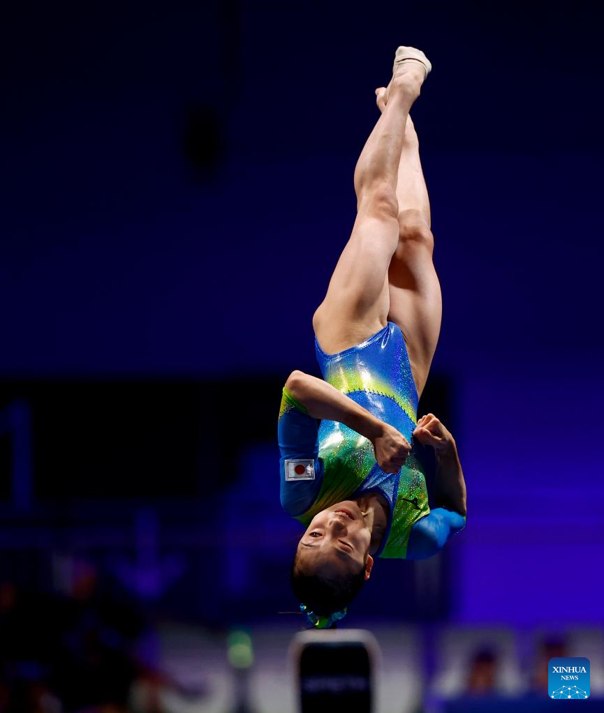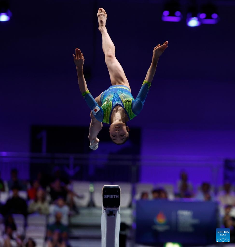 Okamura Mana of Japan competes on vault during the women's all-around final of the artistic gymnastics event at the Rhine-Ruhr 2025 FISU World University Games in Essen, Germany, July 25, 2025. (Xinhua/Li Ying)