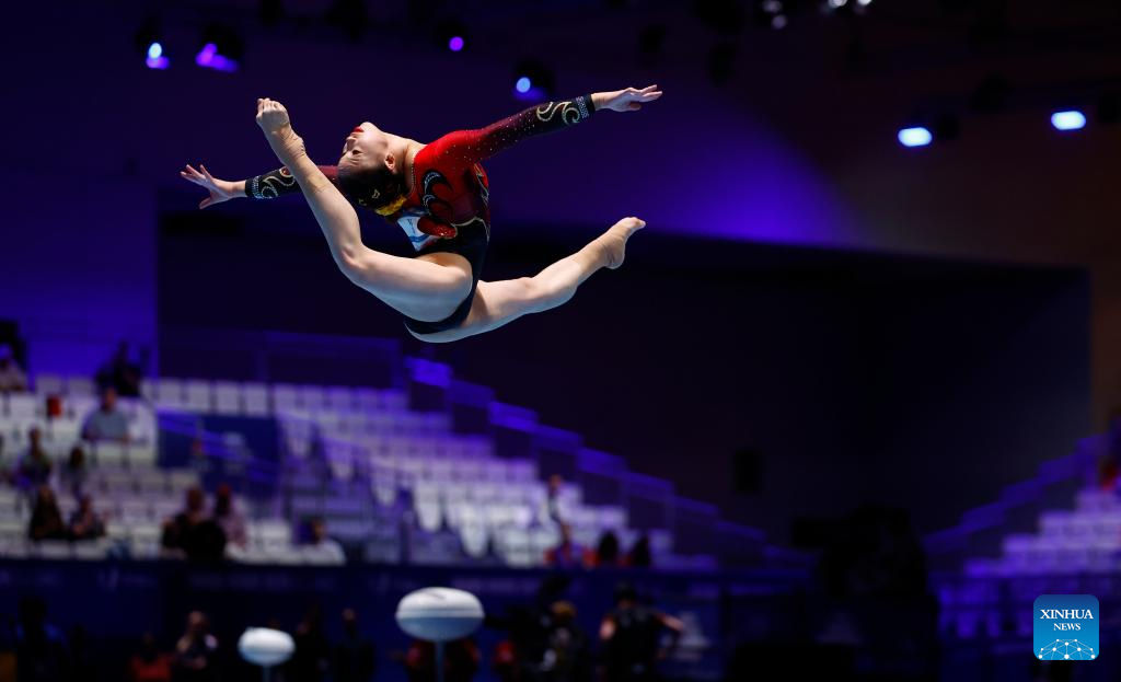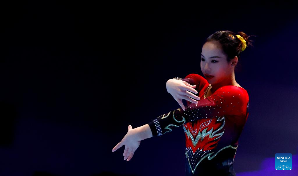 Xiang Lulu of China competes in floor exercise during the women's all-around final of the artistic gymnastics event at the Rhine-Ruhr 2025 FISU World University Games in Essen, Germany, July 25, 2025. (Xinhua/Li Ying)