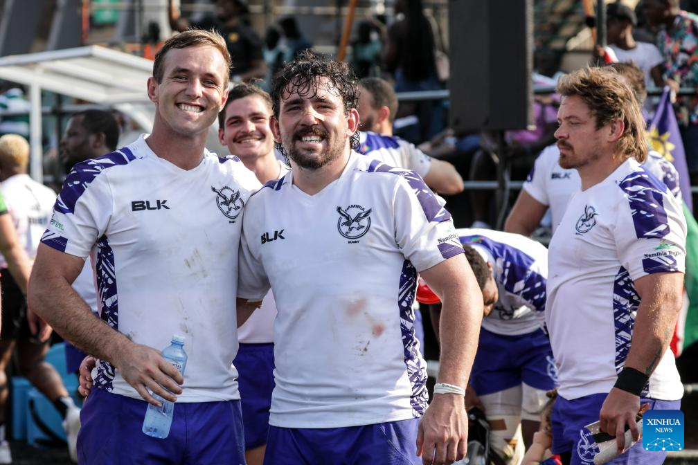 Players of Namibia react after the Asia/Africa play-off match between Namibia and United Arab Emirates for the 2027 Rugby World Cup qualifiers at Mandela National Stadium in Kampala, Uganda, July 26, 2025. (Photo by Hajarah Nalwadda/Xinhua)