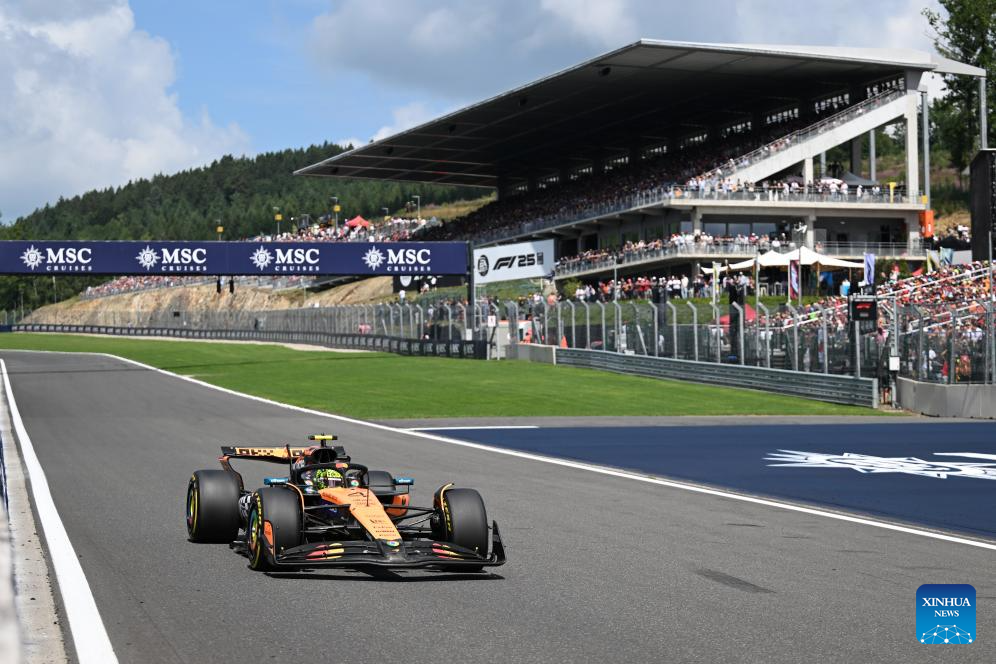 McLaren's British driver Lando Norris races during the Sprint Race of the Formula One Belgian Grand Prix at the Spa-Francorchamps circuit in Stavelot, Belgium, July 26, 2025. (Xinhua/Zhao Dingzhe)