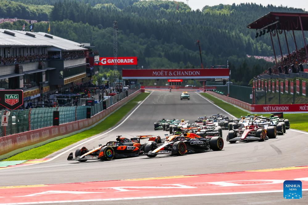Drivers race during the Sprint Race of the Formula One Belgian Grand Prix at the Spa-Francorchamps circuit in Stavelot, Belgium, July 26, 2025. (Xinhua/Zhao Dingzhe)