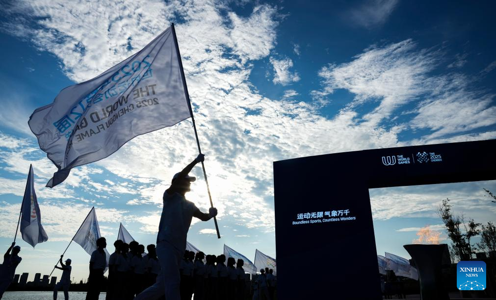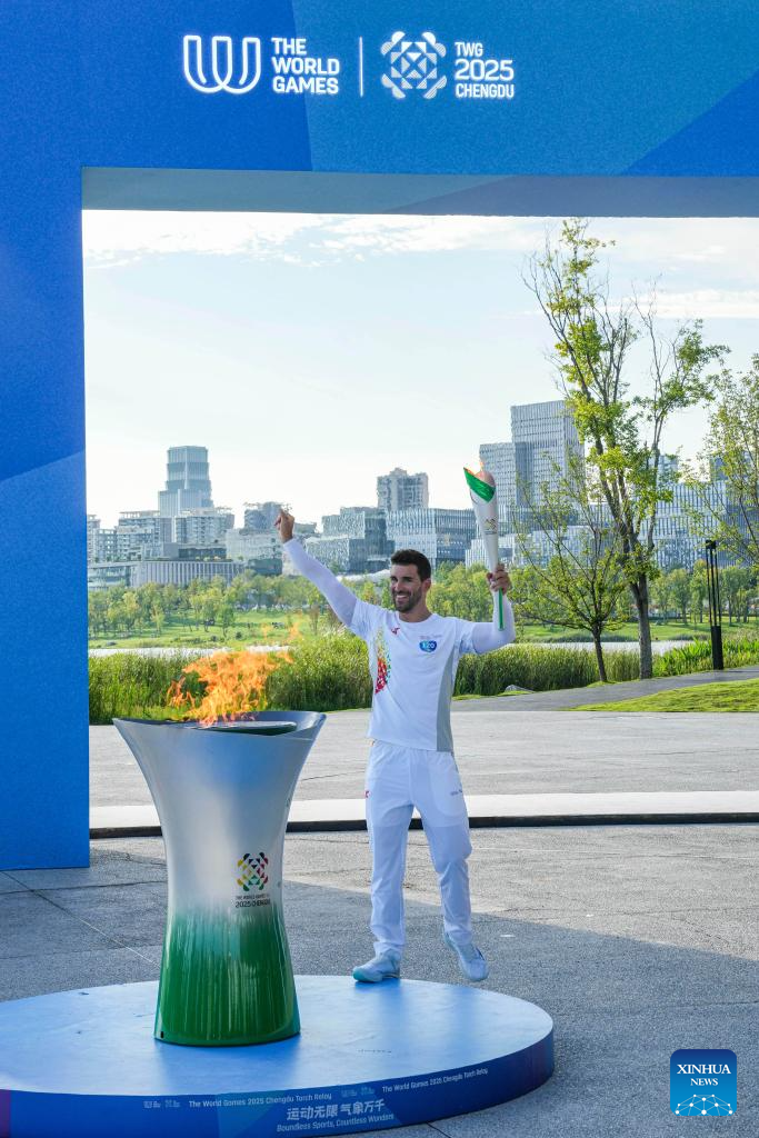 Photo taken on July 26, 2025 shows the World Games 2025 Torch Relay in Chengdu, southwest China's Sichuan Province. (Xinhua/Ding Zengnida)