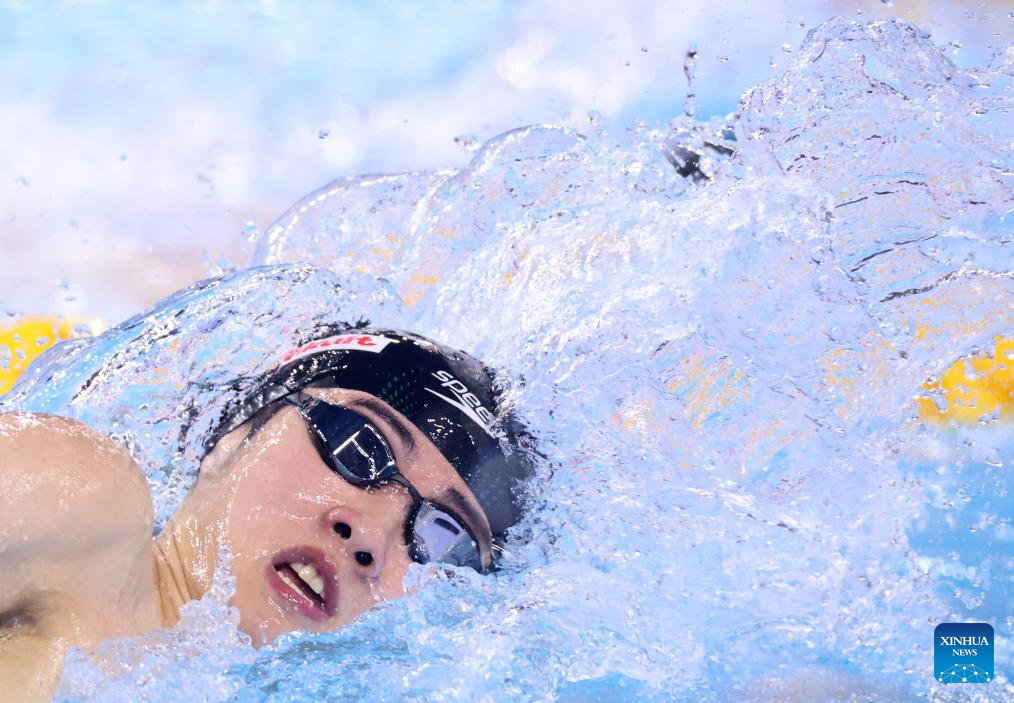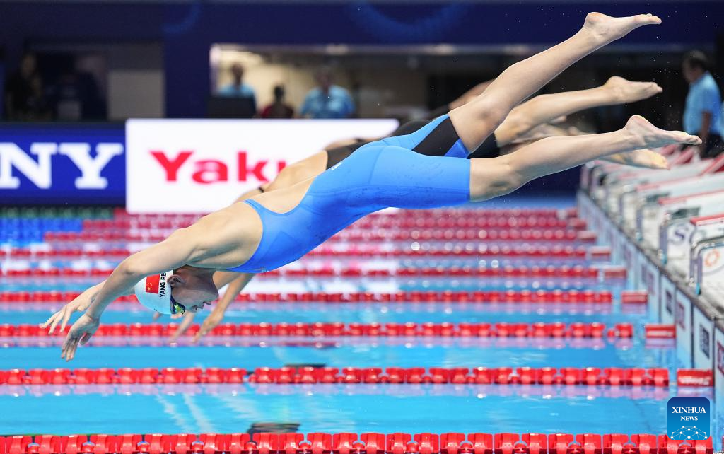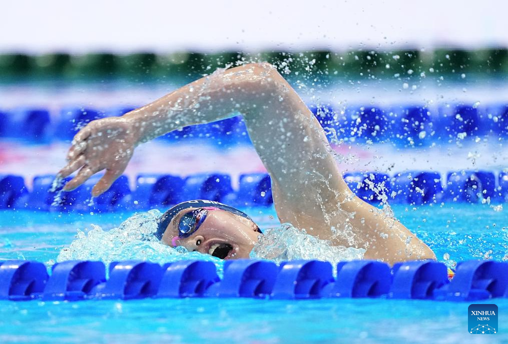 Yang Peiqi of China competes during the women's 1500m freestyle final of swimming at the World Aquatics Championships in Singapore, July 29, 2025. (Xinhua/Xue Yuge)