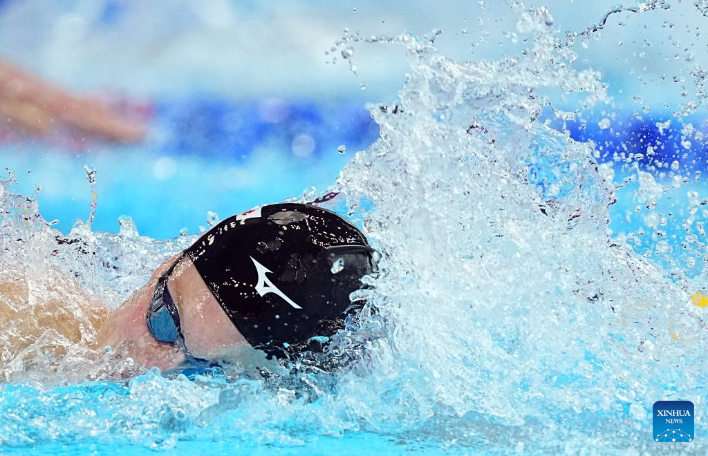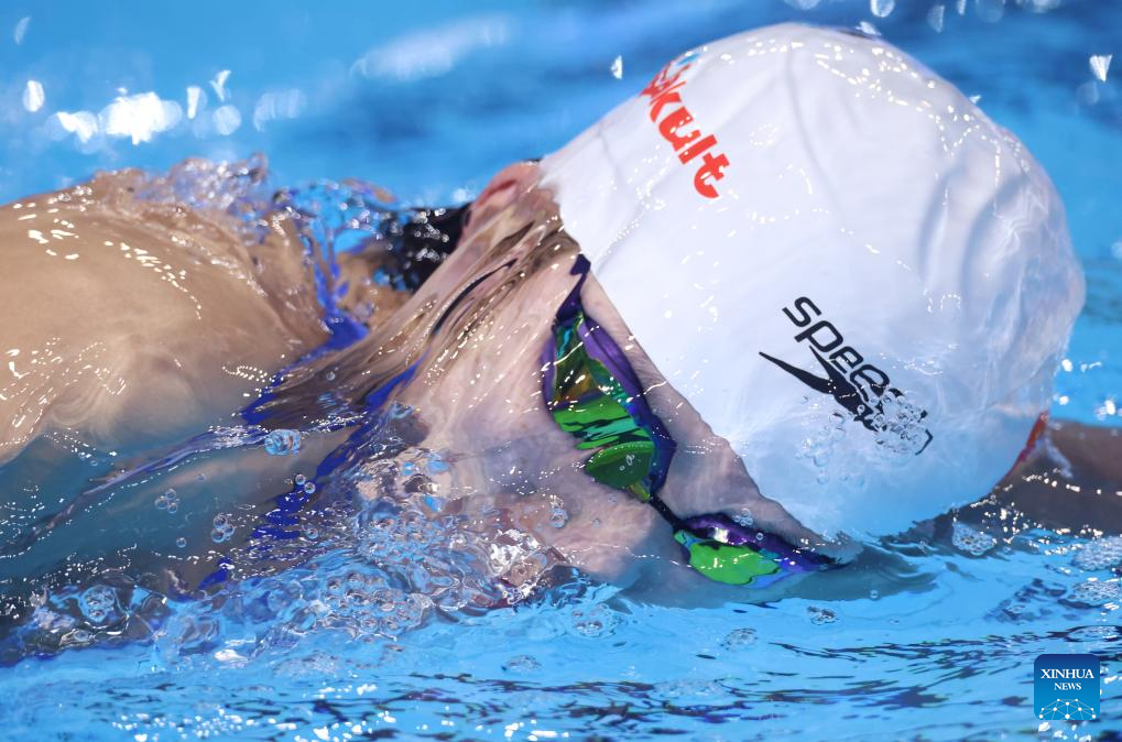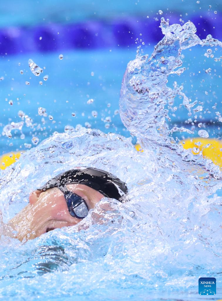 Katie Ledecky of the United States competes during the women's 1500m freestyle final of swimming at the World Aquatics Championships in Singapore, July 29, 2025. (Xinhua/Xue Yuge)