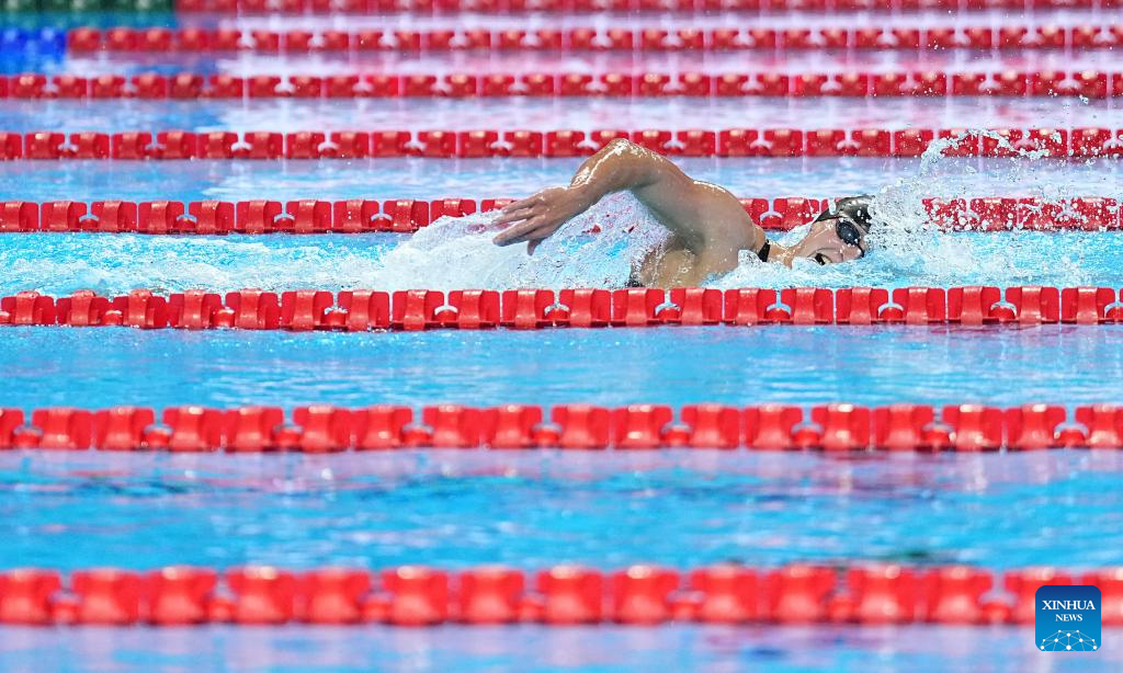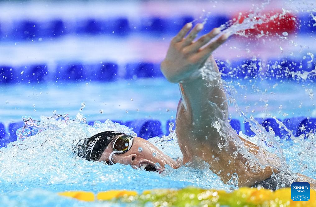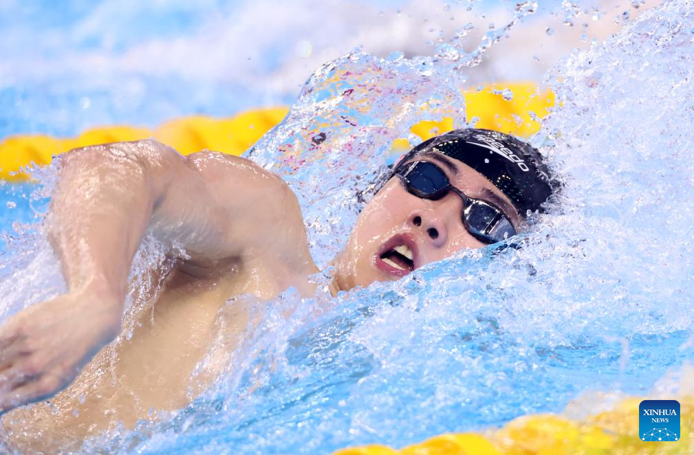 Hwang Sunwoo of South Korea competes during the men's 200m freestyle final of swimming at the World Aquatics Championships in Singapore, July 29, 2025. (Xinhua/Luo Yuan)
