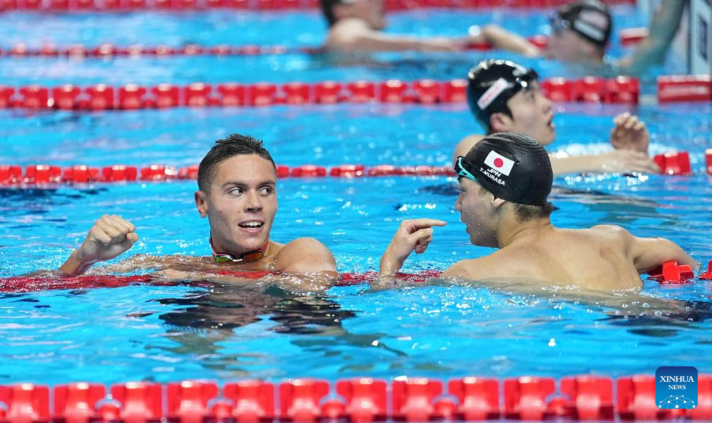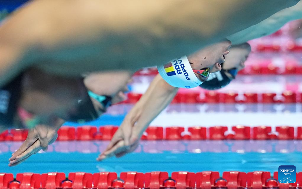 of Romania are seen after the men's 200m freestyle final of swimming at the World Aquatics Championships in Singapore, July 29, 2025. (Xinhua/Xue Yuge)