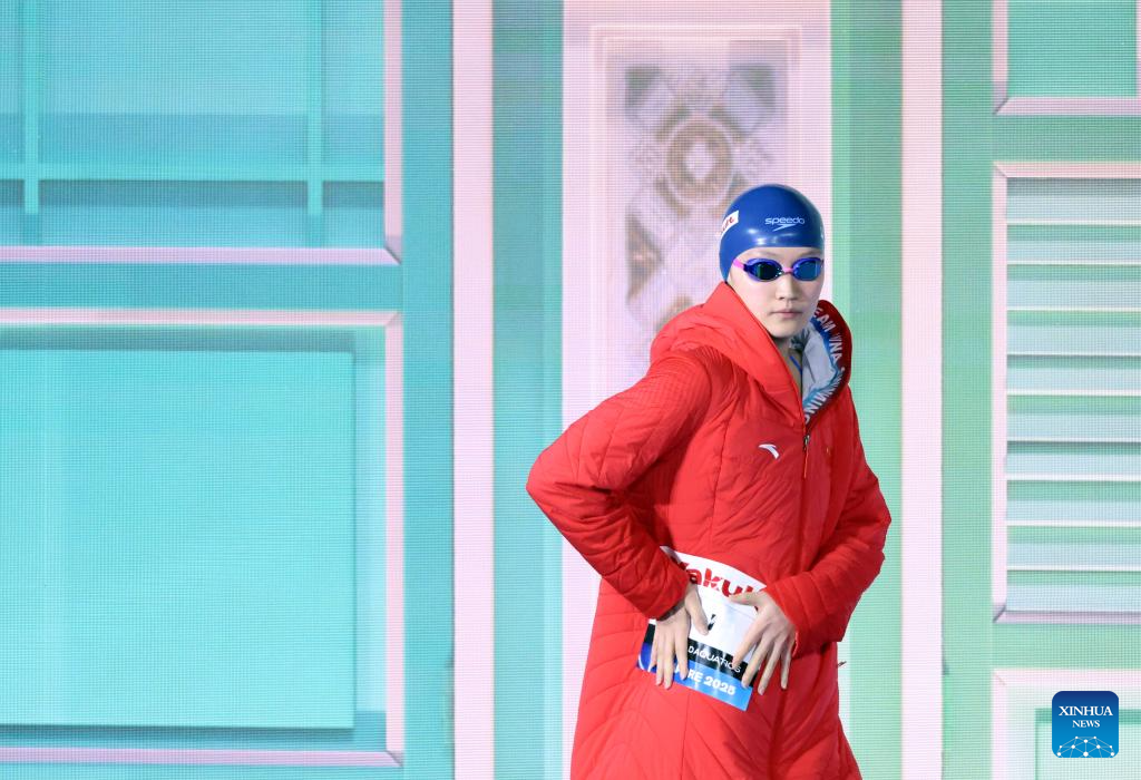 Li Bingjie of China is seen before the women's 200m freestyle semifinal of swimming at the World Aquatics Championships in Singapore, July 29, 2025. (Xinhua/Luo Yuan)