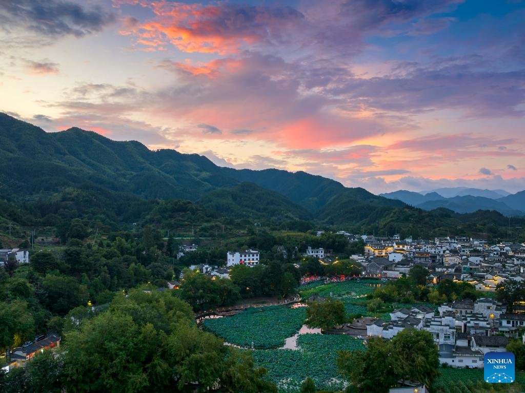 This photo taken on July 25, 2025 shows a view at dusk in Chengkan Village, Huizhou District of Huangshan City, east China's Anhui Province.