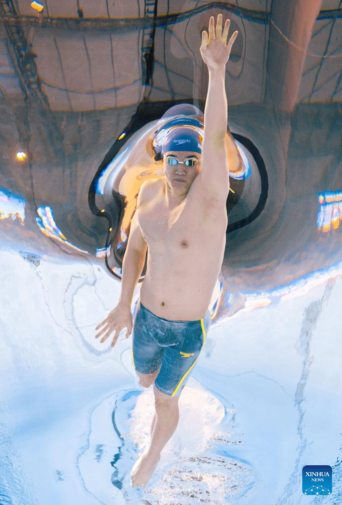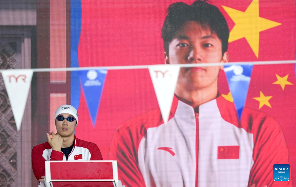 Pan Zhanle of China is seen before the men's 100m freestyle semifinal of swimming at the World Aquatics Championships in Singapore, July 30, 2025. (Xinhua/Wu Zhizun)