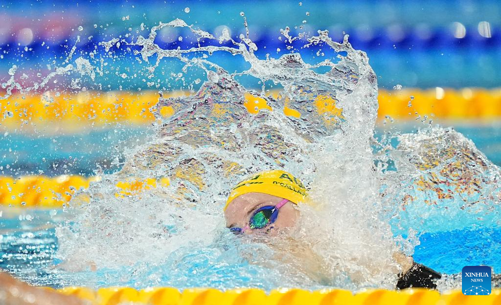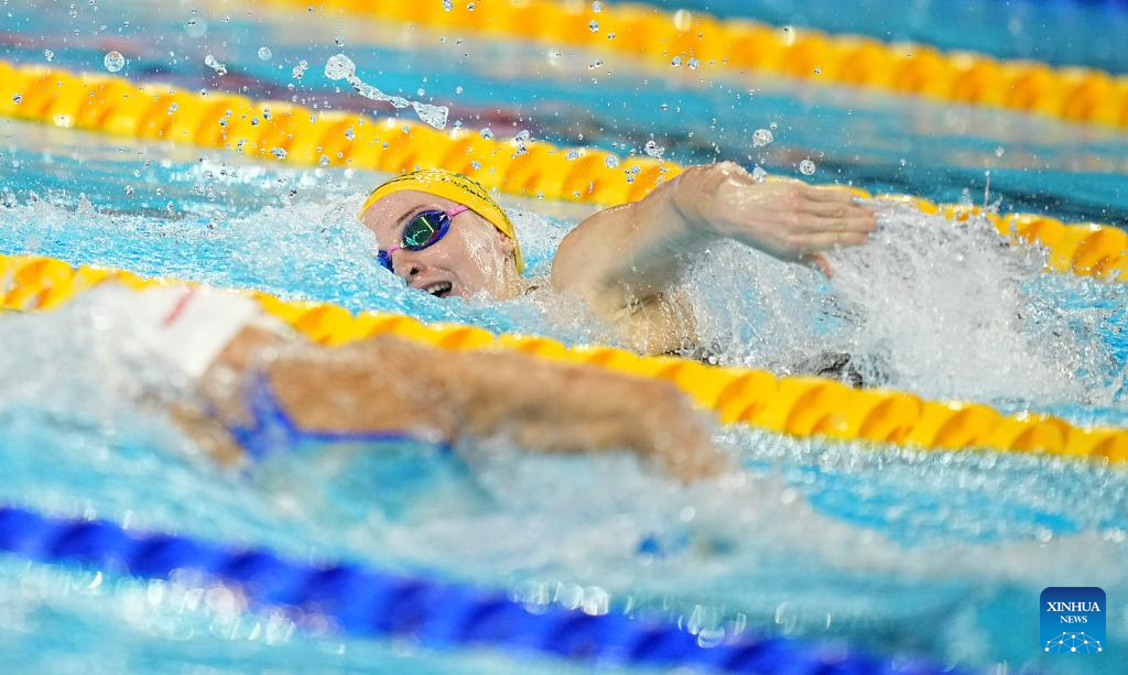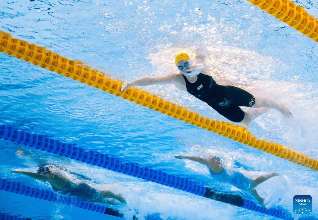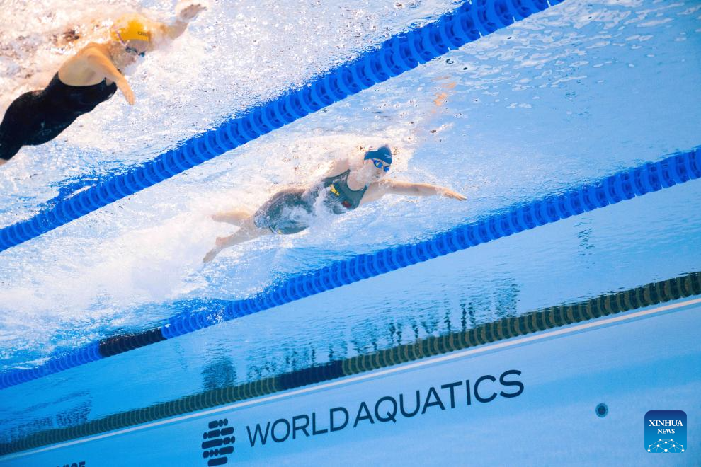 Mollie O'Callaghan of Australia competes during the women's 200m freestyle final of swimming at the World Aquatics Championships in Singapore, July 30, 2025. (Xinhua/Xia Yifang)