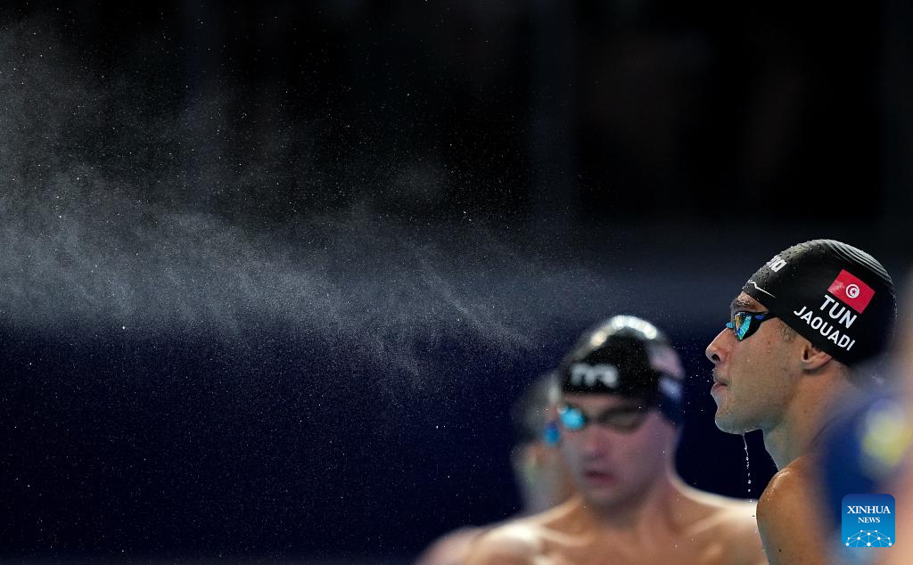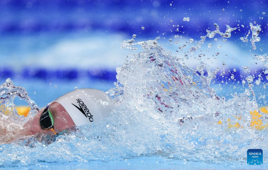 Ahmed Jaouadi of Tunisia competes during the men's 800m freestyle final of swimming at the World Aquatics Championships in Singapore, July 30, 2025. (Xinhua/Wu Zhizun)