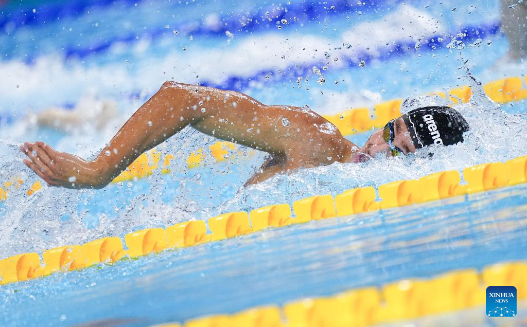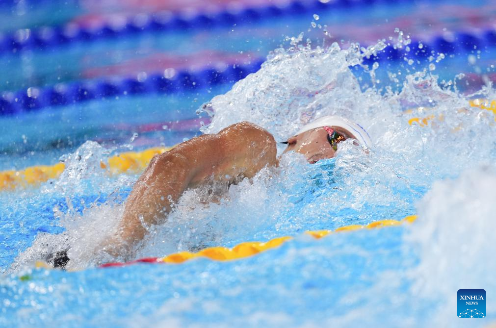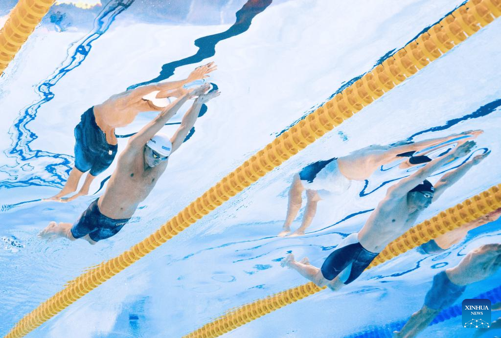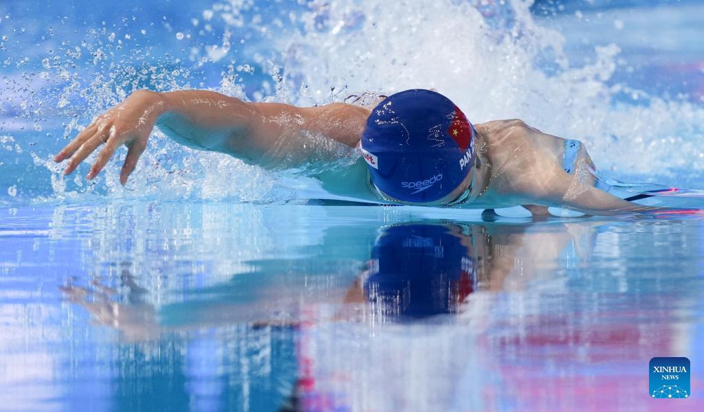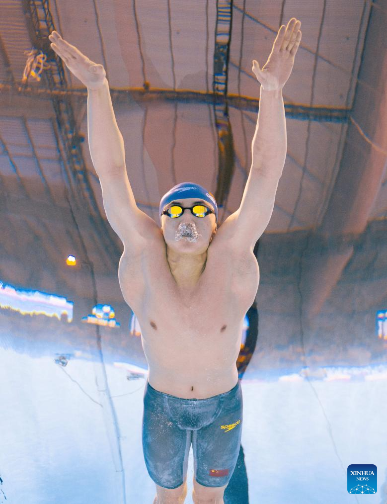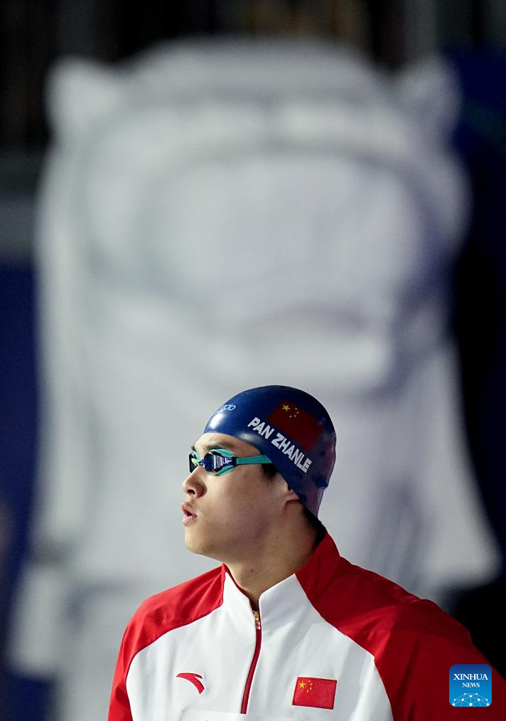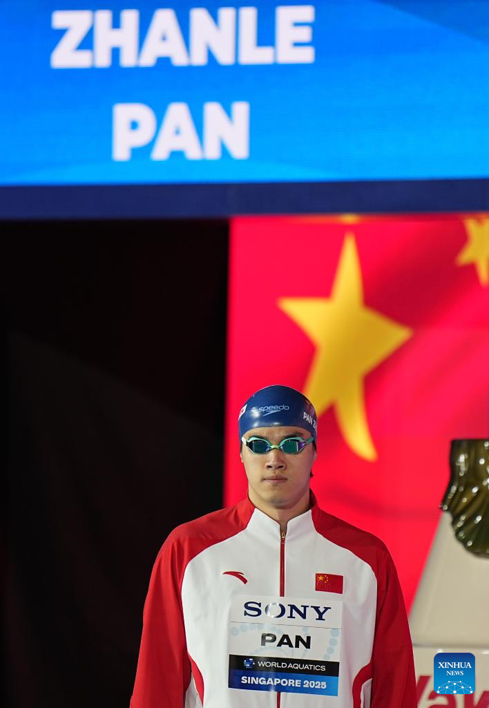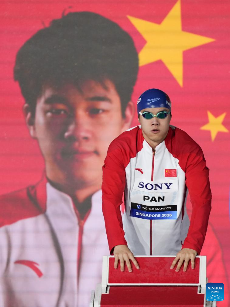 Pan Zhanle of China competes during the men's 100m freestyle semifinal of swimming at the World Aquatics Championships in Singapore, July 30, 2025. (Xinhua/Xue Yuge)