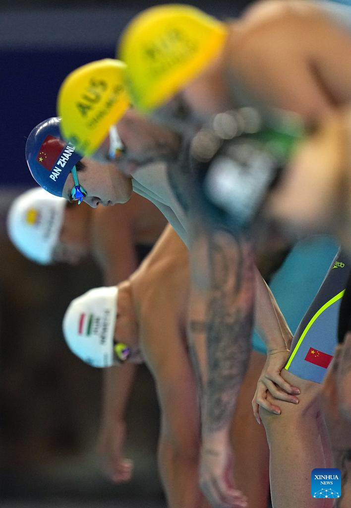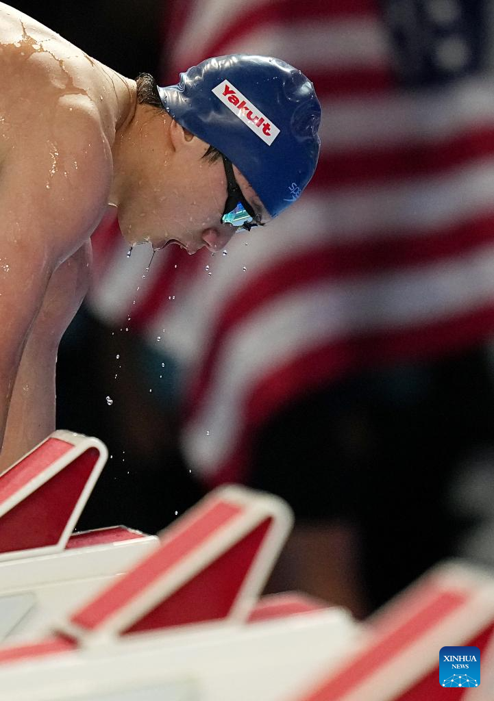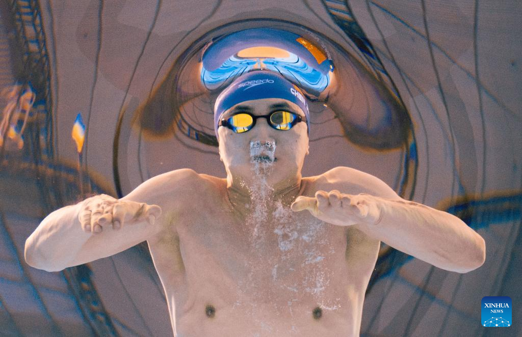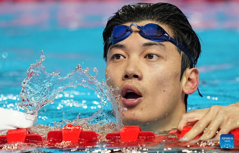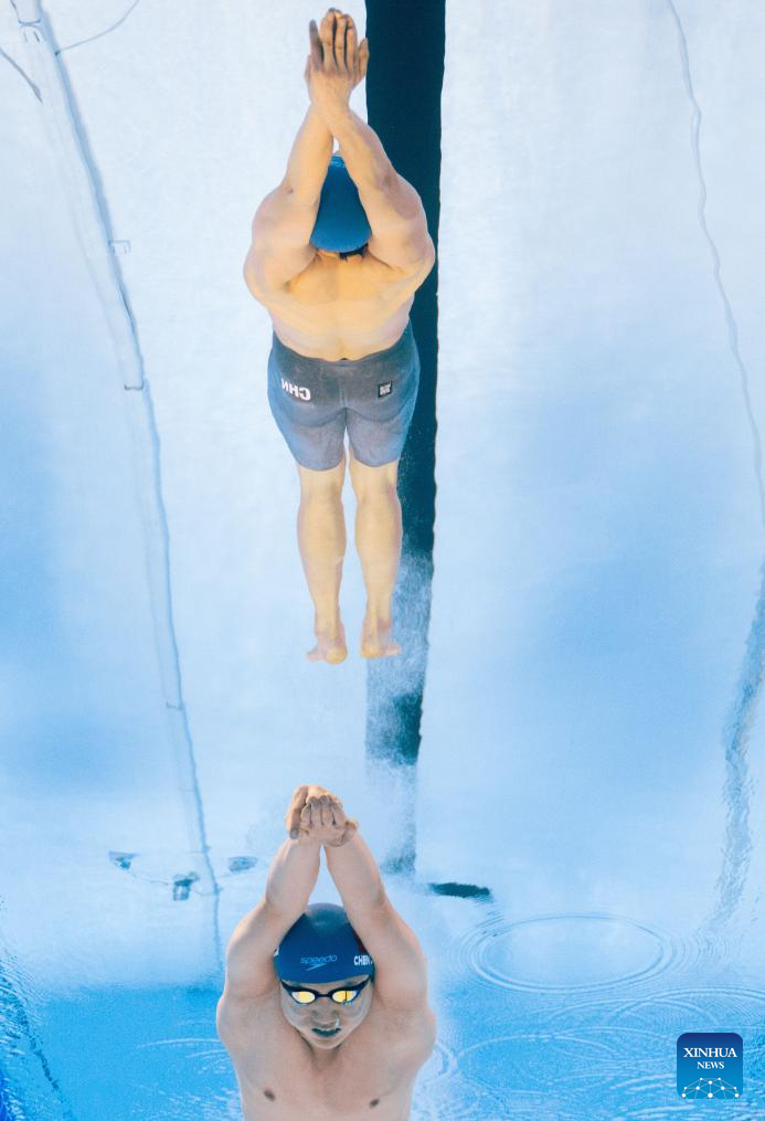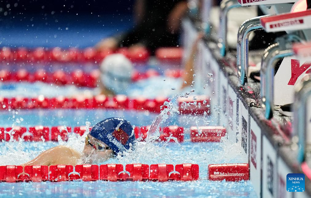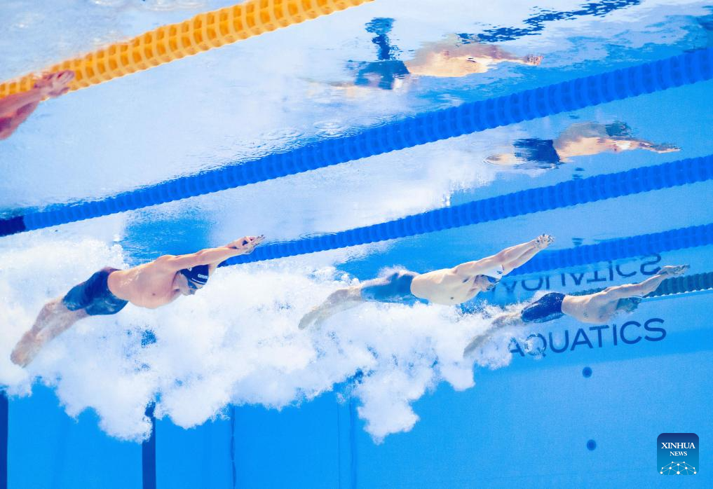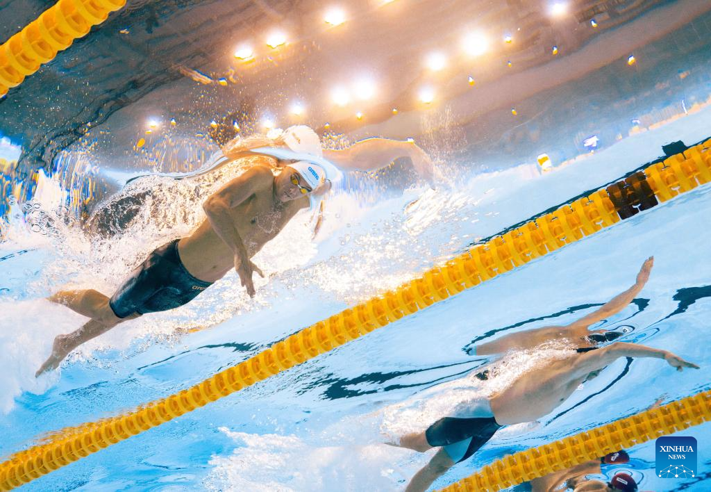 Pan Zhanle of China competes during the men's 100m freestyle semifinal of swimming at the World Aquatics Championships in Singapore, July 30, 2025. (Xinhua/Xue Yuge)