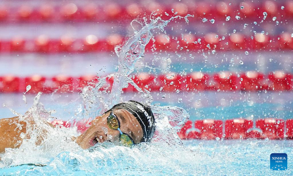 Sven Schwarz of Germany competes during the men's 800m freestyle final of swimming at the World Aquatics Championships in Singapore, July 30, 2025. (Xinhua/Wu Zhizun)