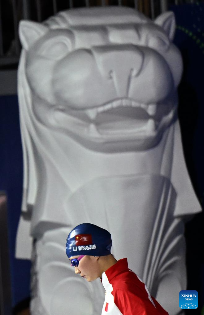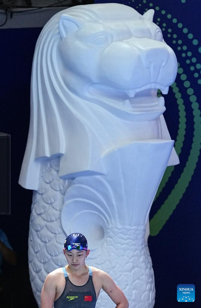 Li Bingjie of China is seen before the women's 200m freestyle final of swimming at the World Aquatics Championships in Singapore, July 30, 2025. (Xinhua/Xia Yifang)