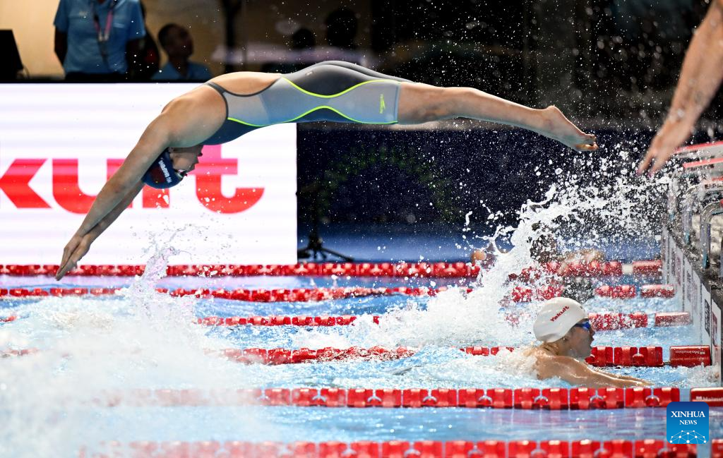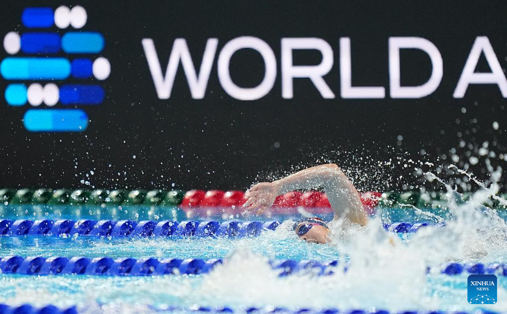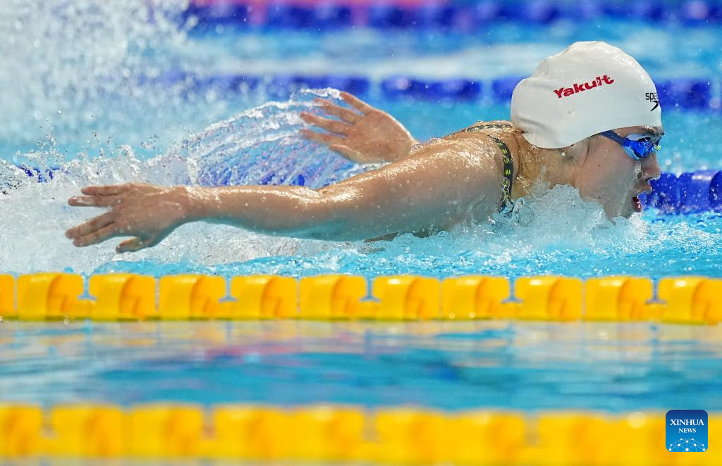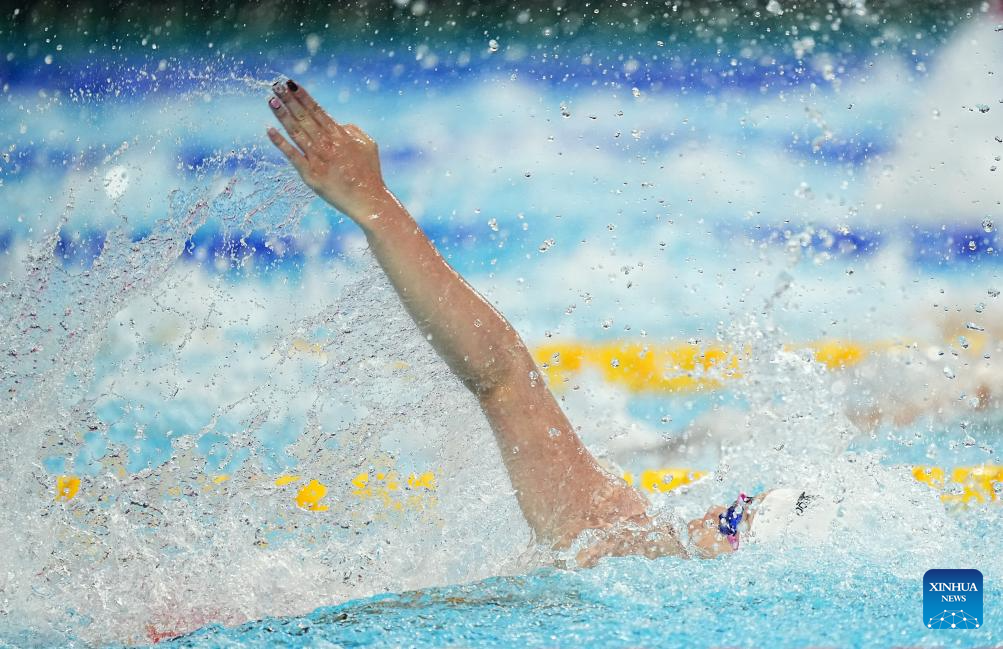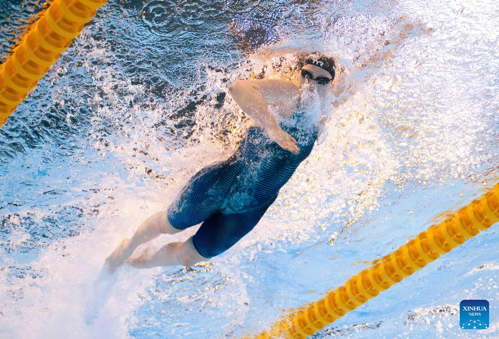 Claire Weinstein of the United States competes during the women's 200m freestyle final of swimming at the World Aquatics Championships in Singapore, July 30, 2025. (Xinhua/Xue Yuge)