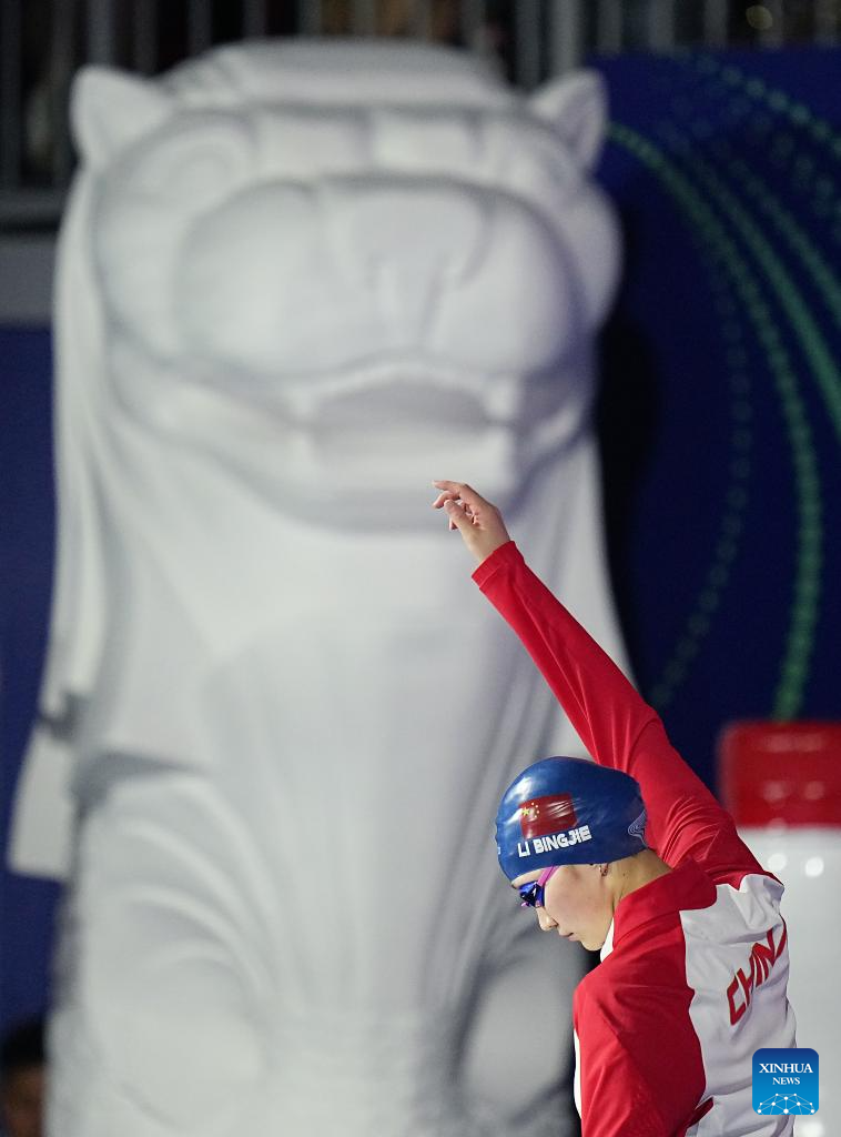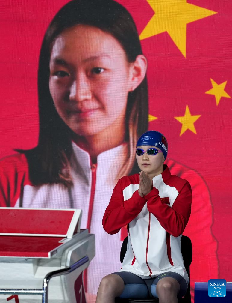 Li Bingjie of China is seen before the women's 200m freestyle final of swimming at the World Aquatics Championships in Singapore, July 30, 2025. (Xinhua/Wu Zhizun)