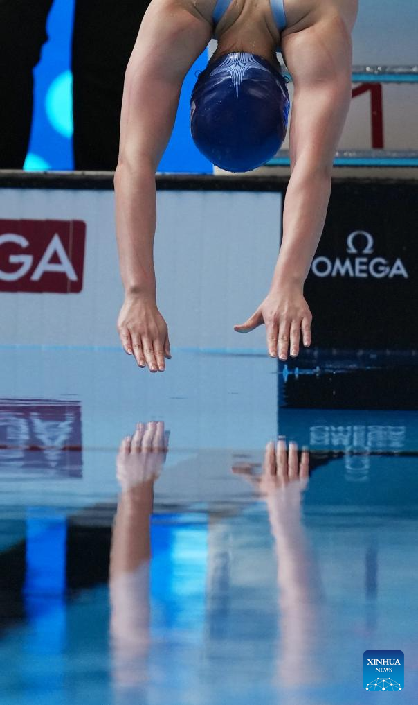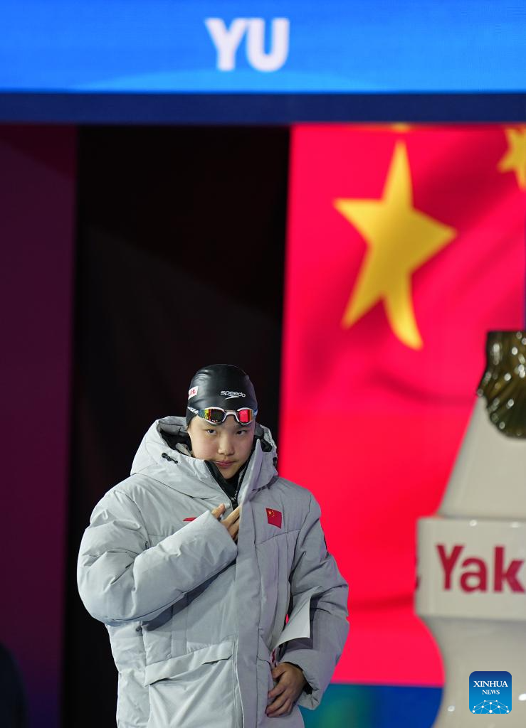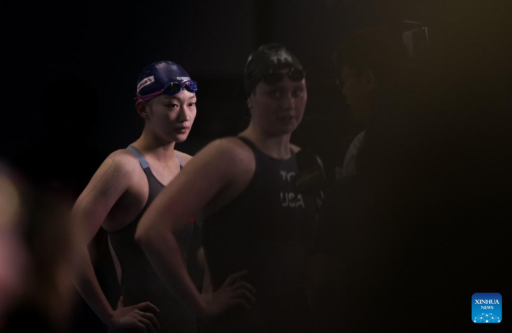 Yu Zidi of China is seen before the women's 200m butterfly semifinal of swimming at the World Aquatics Championships in Singapore, July 30, 2025. (Xinhua/Xia Yifang)